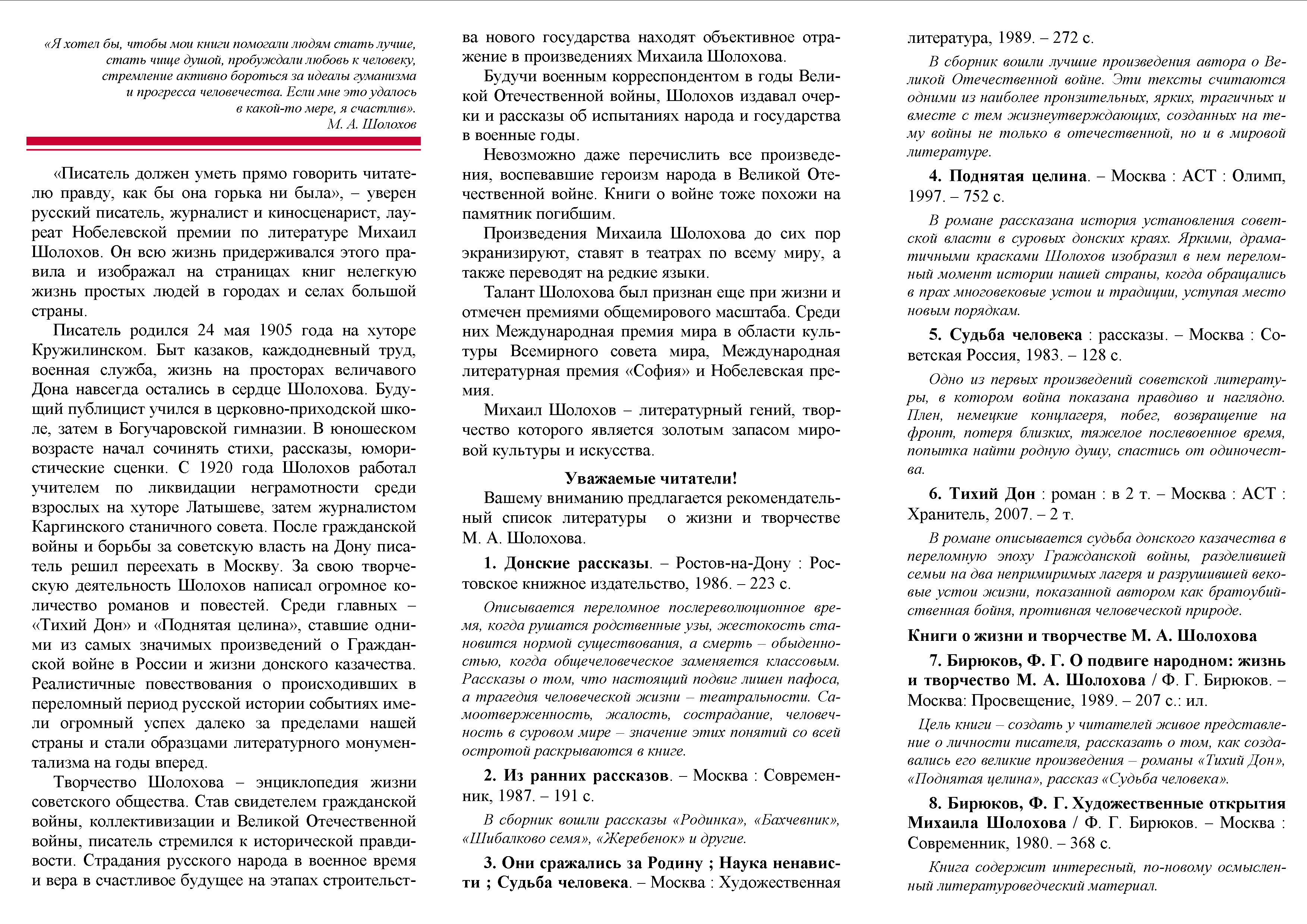 Летописец земли донской к 120-летию со дня рождения М. А. Шолохова