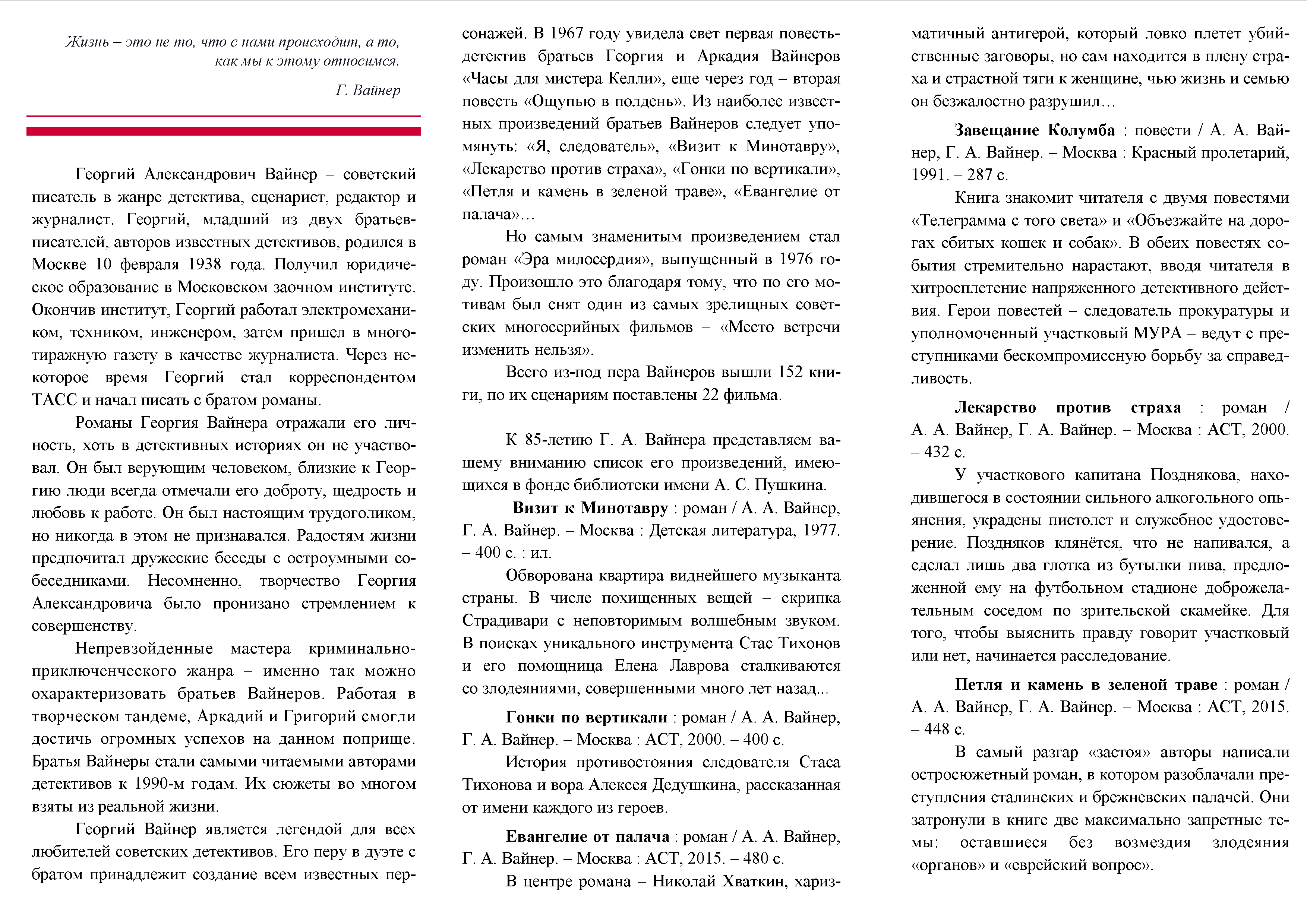 Библиографическая памятка к 85-летию Г. А. Вайнера