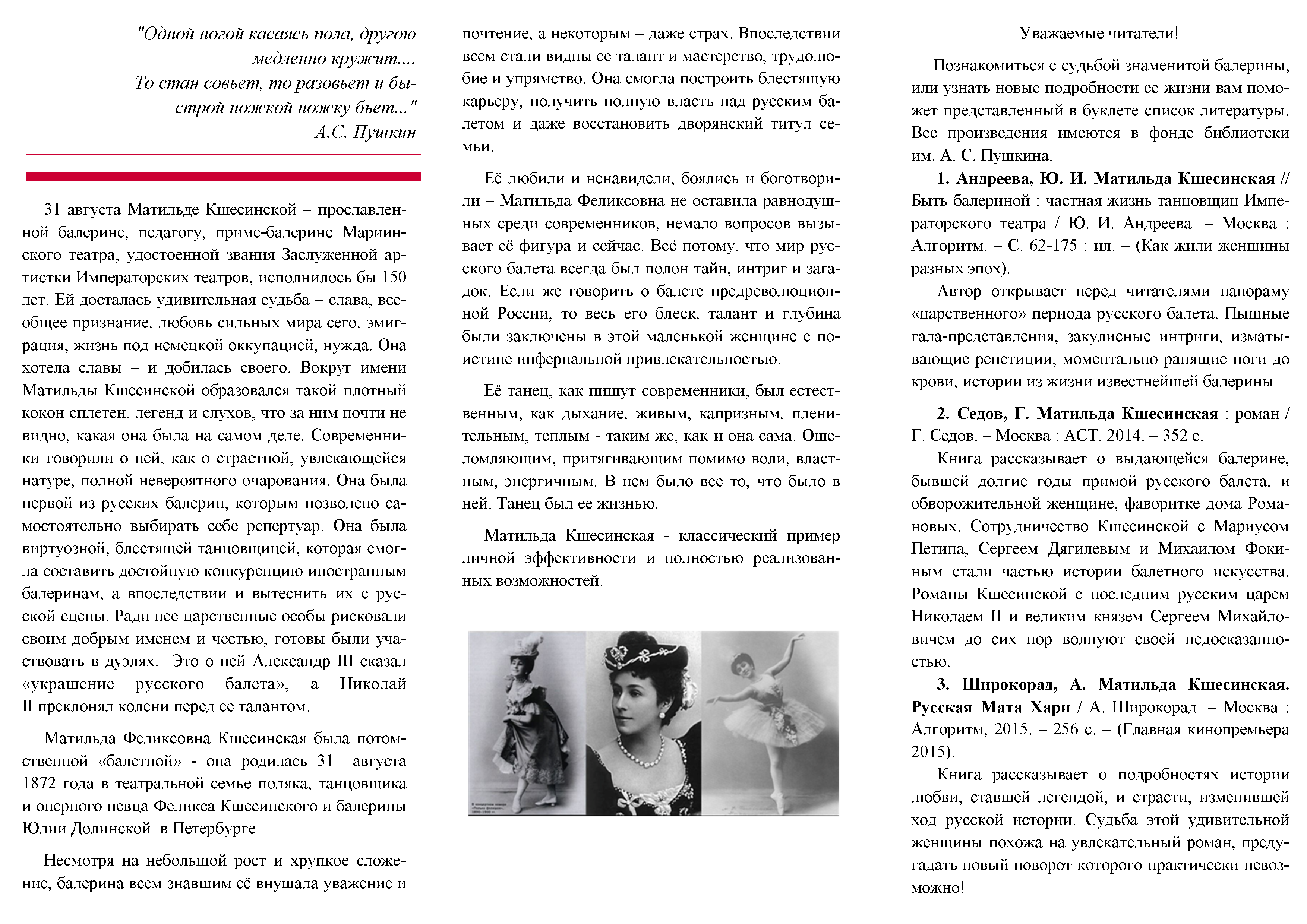 Библиографический список к 150-летию Матильды Кшесинской "Фуэте судьбы"