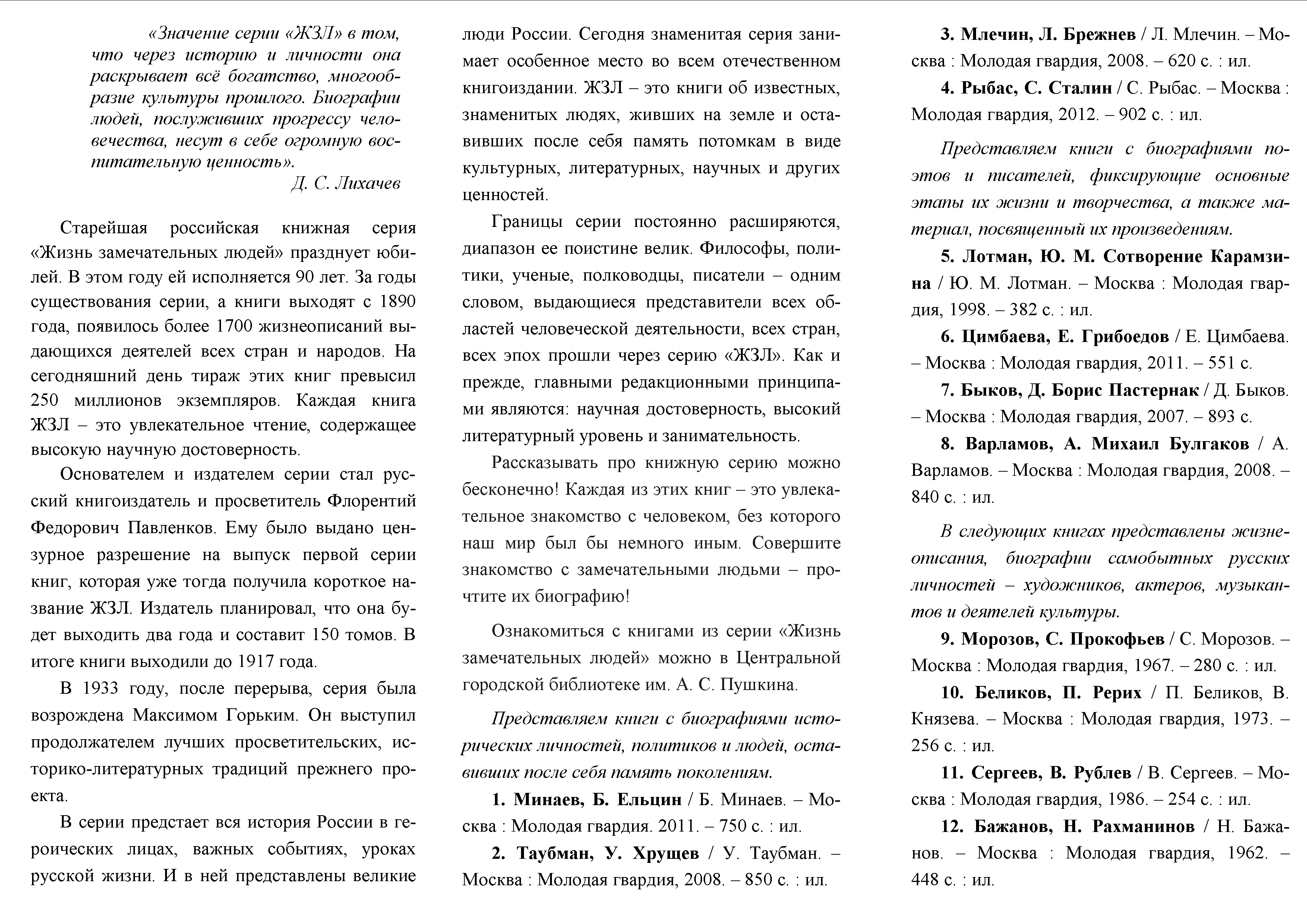 Библиографический список к 90-летию серии «Жизнь замечательных людей»