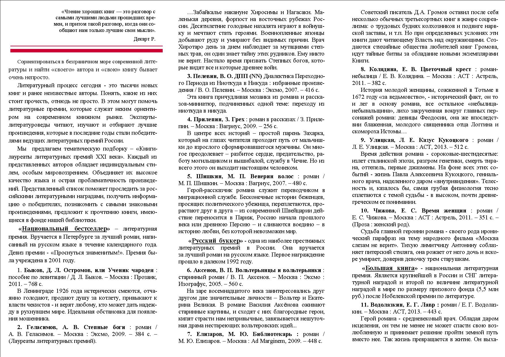 Книги-лауреаты литературных премий XXI века