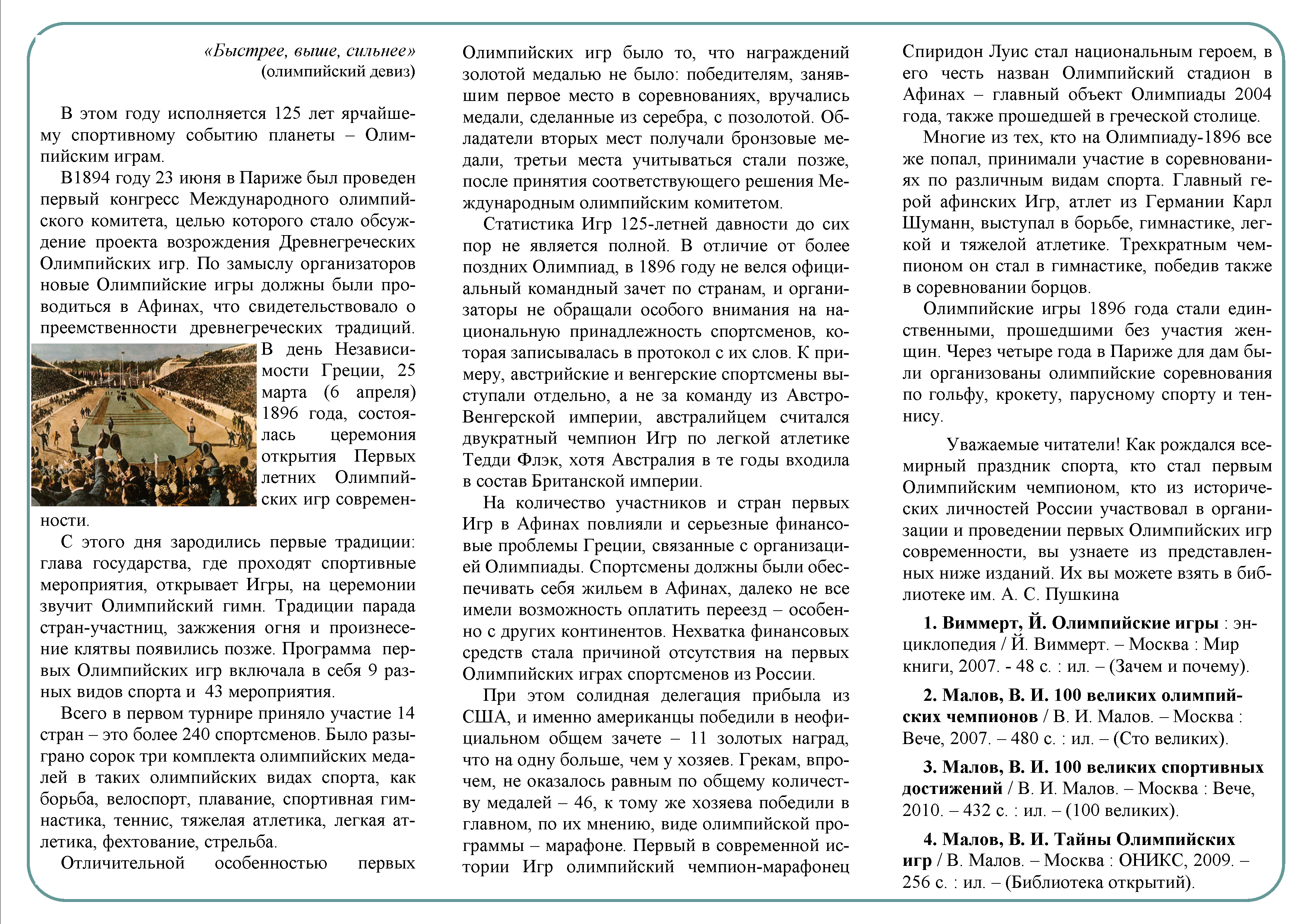 к 125-летию первых Олимпийских игр современности
