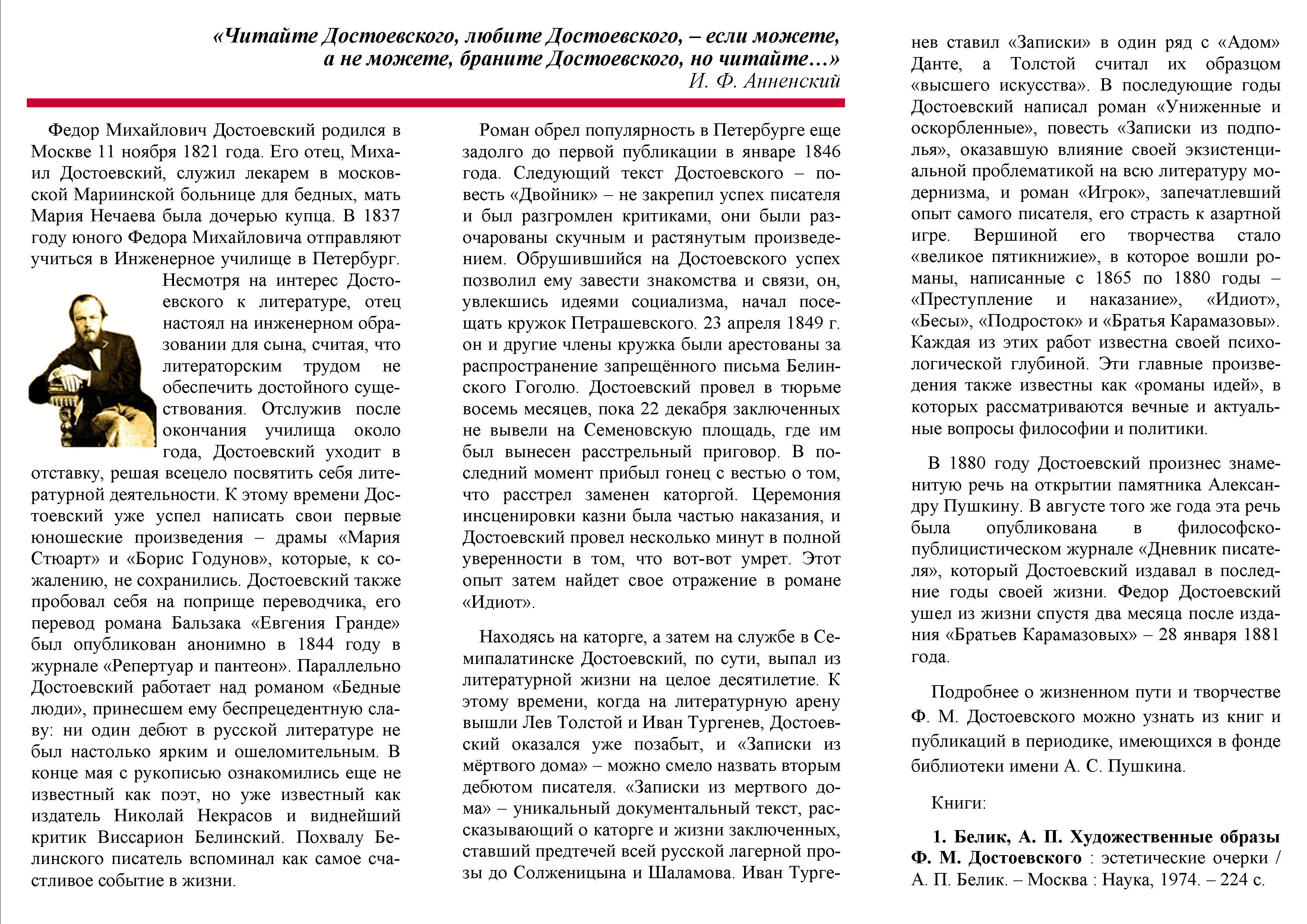 Библиографический список к 200-летию со дня рождения писателя