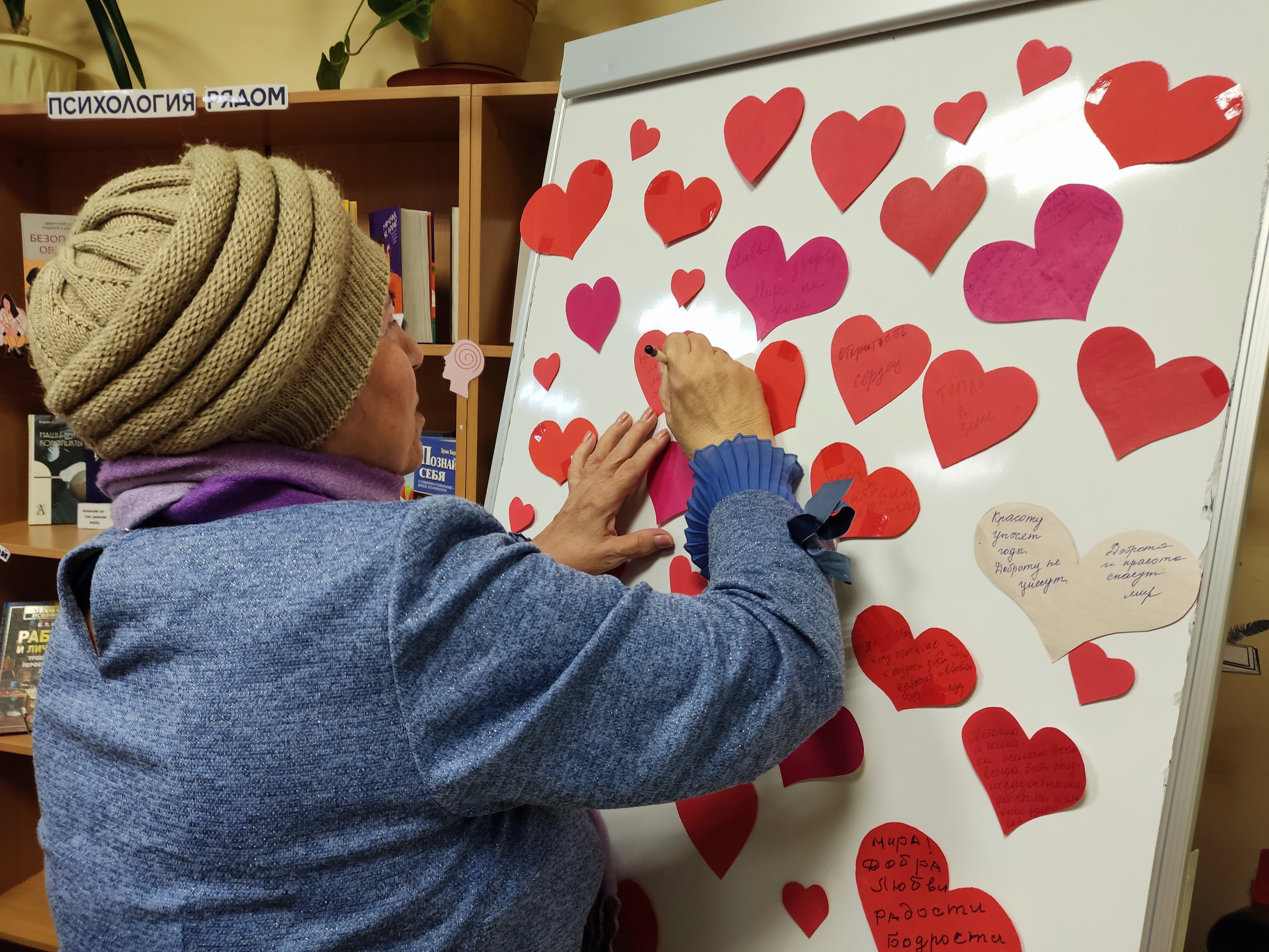 Участники вечера читали стихи о добре, счастье и вере в лучшее. Особое впечатление произвели трогательные строки собственного сочинения, которые представил Анатолий Алексеев. Особенно запомнились моменты с «Цветком пожеланий». Гости срывали лепестки и зачитывали вслух добрые слова для всех присутствующих. А ещё выразили свои чувства на открытках в форме сердца. Одна из читательниц - Ольга Губайдуллина выразила свою доброту небольшими сувенирами в виде мыла, которое она сделала собственными руками.