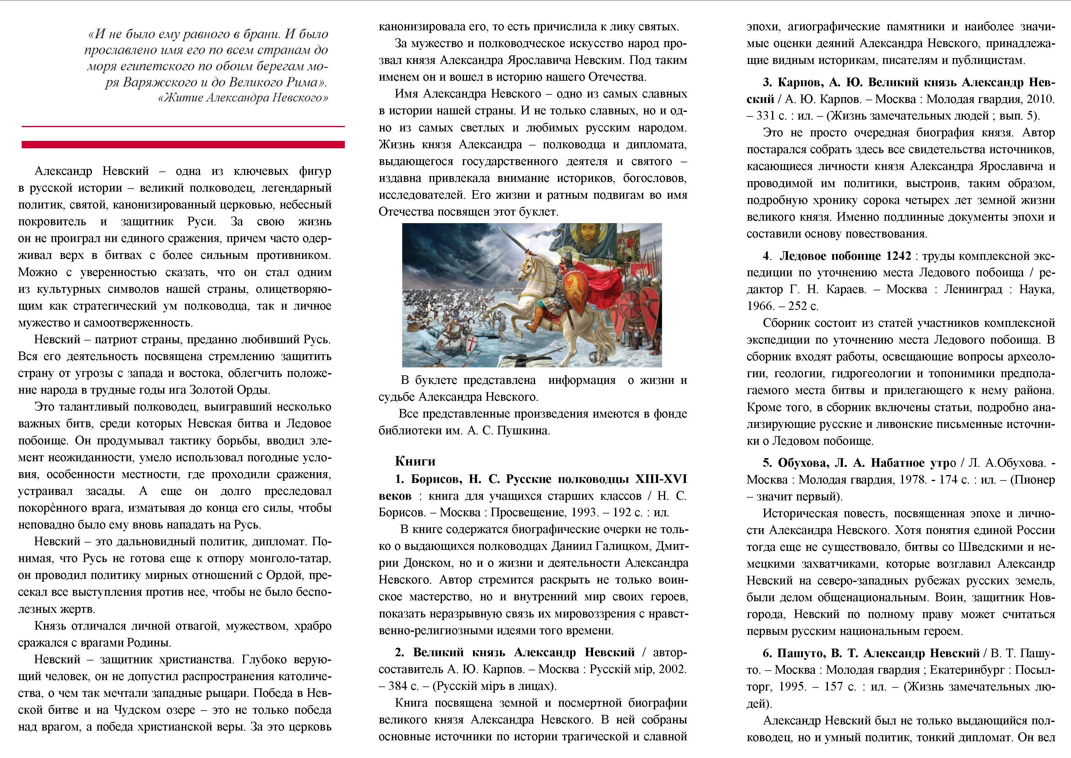 «Он нес Руси святое знамя»:к 800-летию Александра Невского (1221 – 1263)
