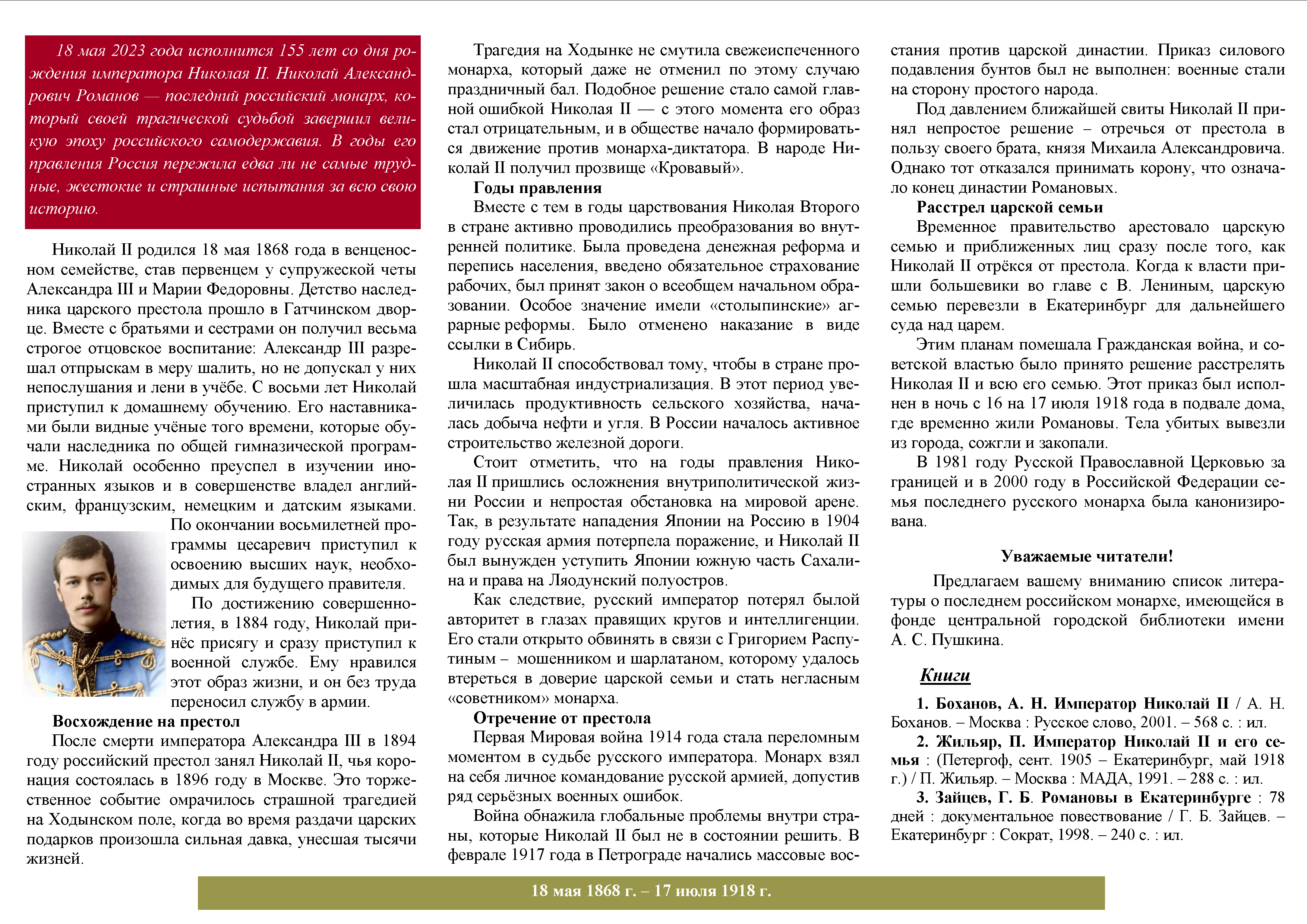 Библиографический список к 225-летию