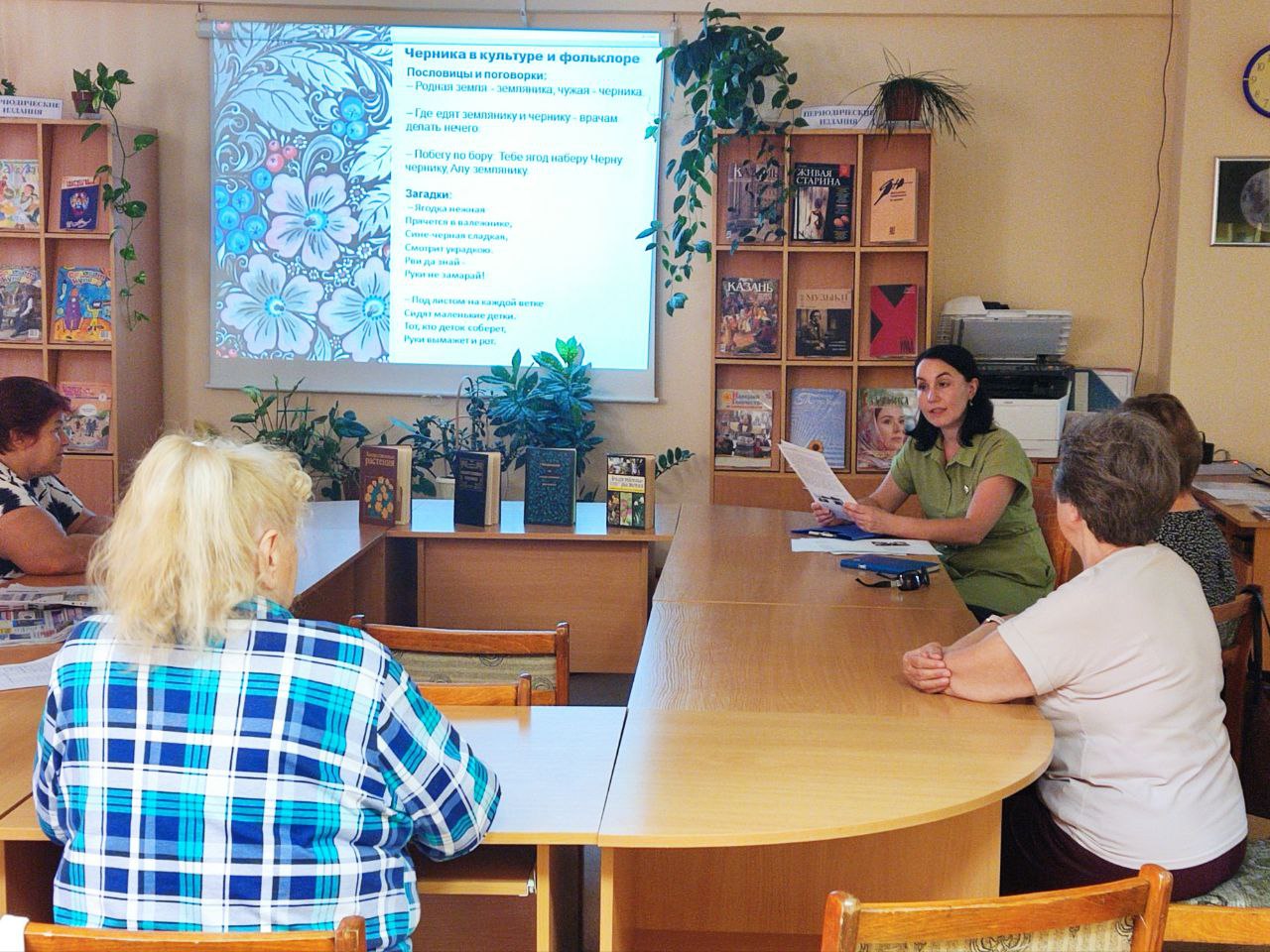 Слушатели узнали, что черника помогает сосудам, зрению и памяти, выводит токсины и дарит долголетие. А ещё — как правильно её заготавливать, где искать на Урале, чем отличается от голубики и какие сорта встречаются в природе и культуре. Каждый участник встречи получил информационный буклет «Черничная кухня», в котором библиотекари подготовили краткую информацию о ворон - ягоде и какие блюда и консервации можно сделать из неё.