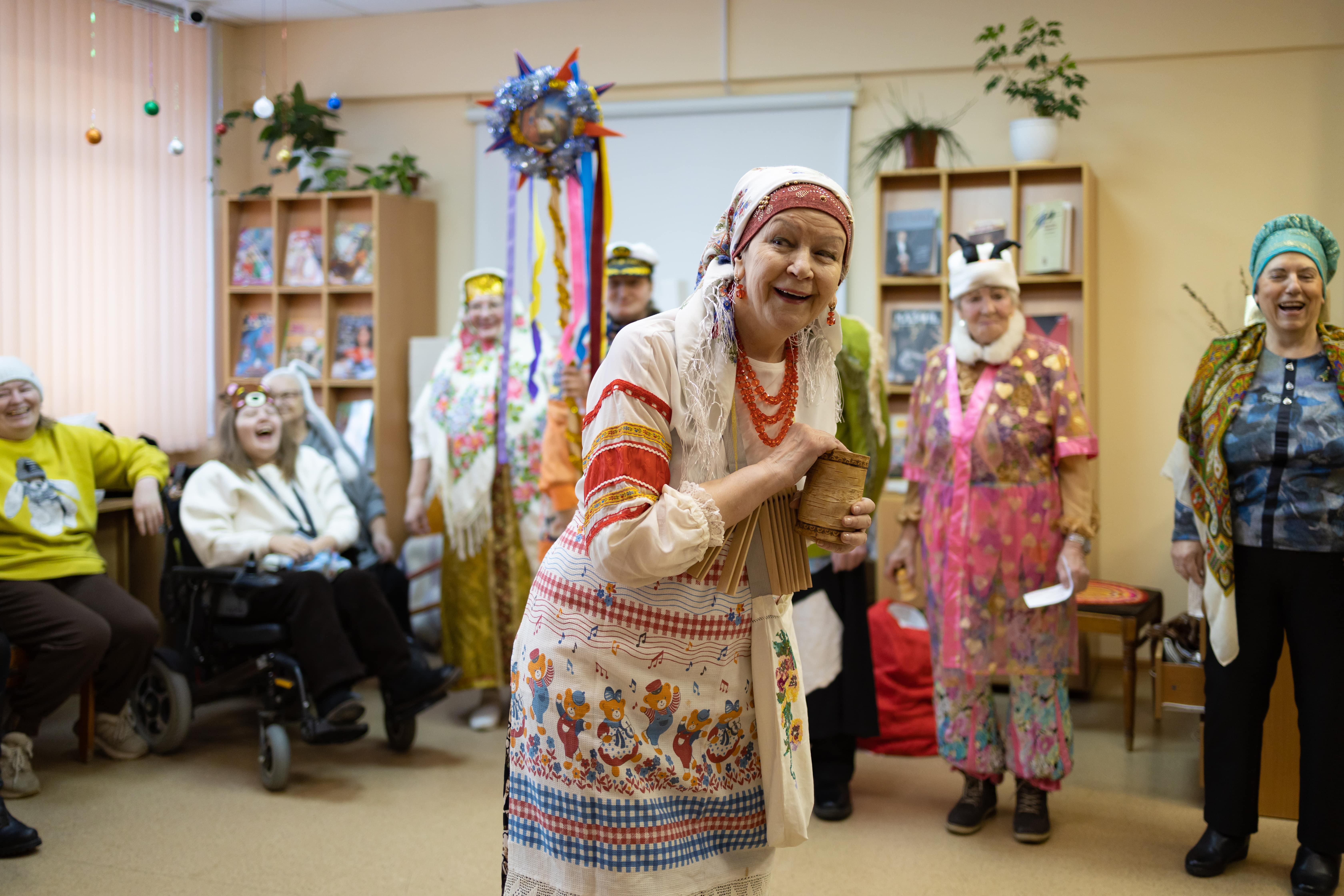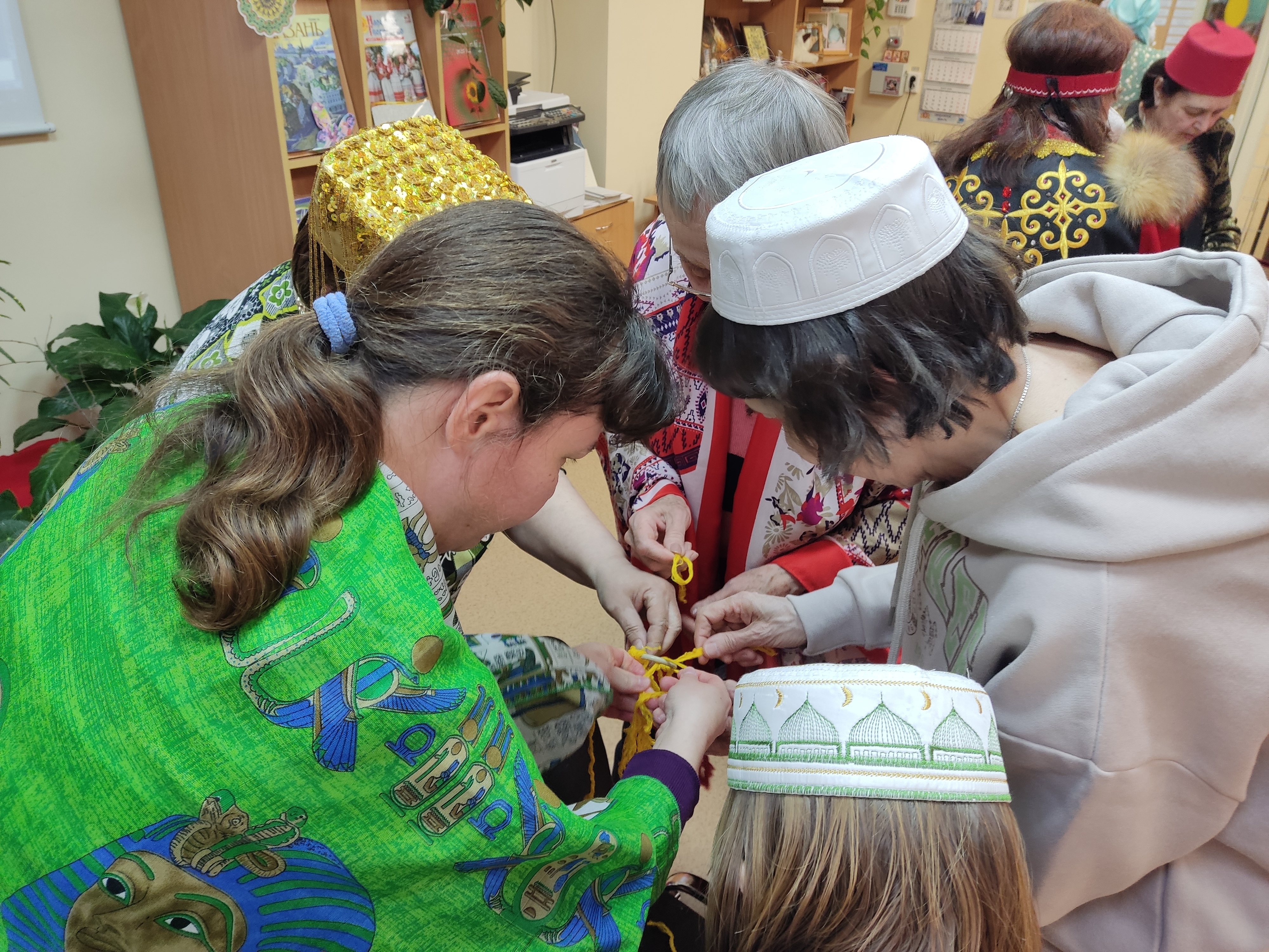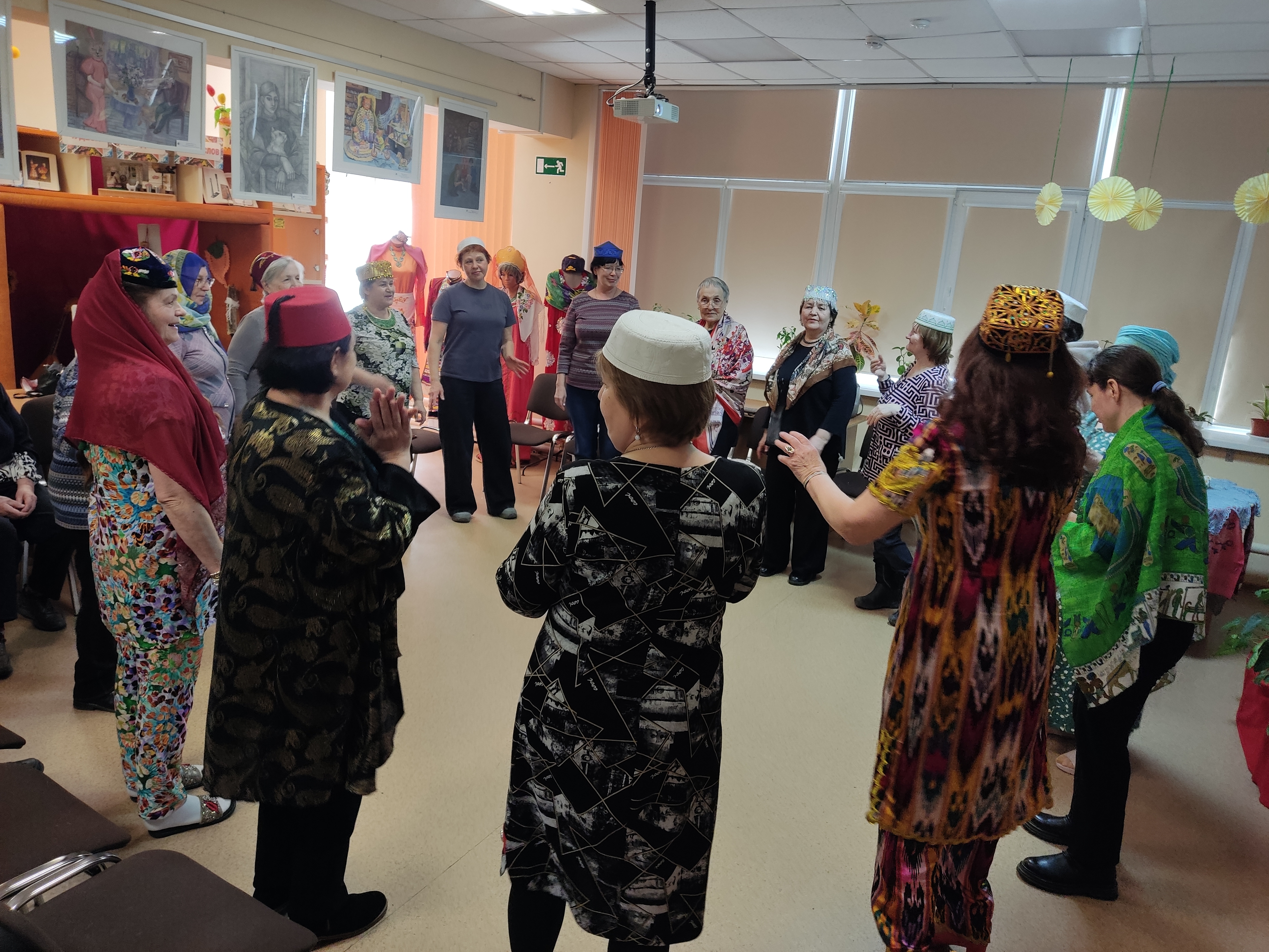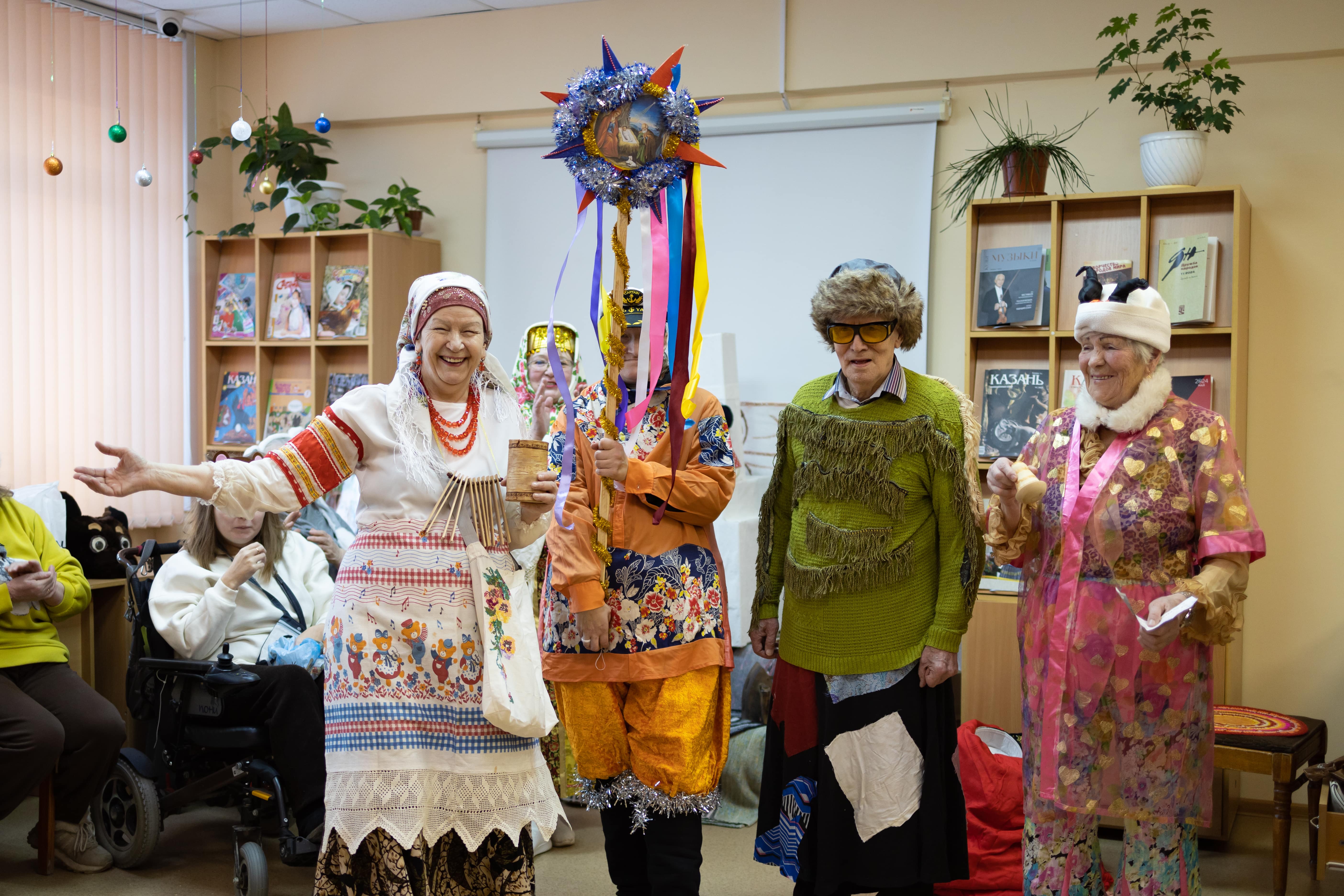 Пели задушевные песни и озорные колядки, пересыпали все искрометными прибаутками. С удовольствием переодевались, на лету придумывали себе наряды. Некоторые облачились в башкирские, узбекские, татарские костюмы или использовали элементы восточных одеяний. Почему бы и нет? Ведь на базе библиотеки Центр национальных культур.