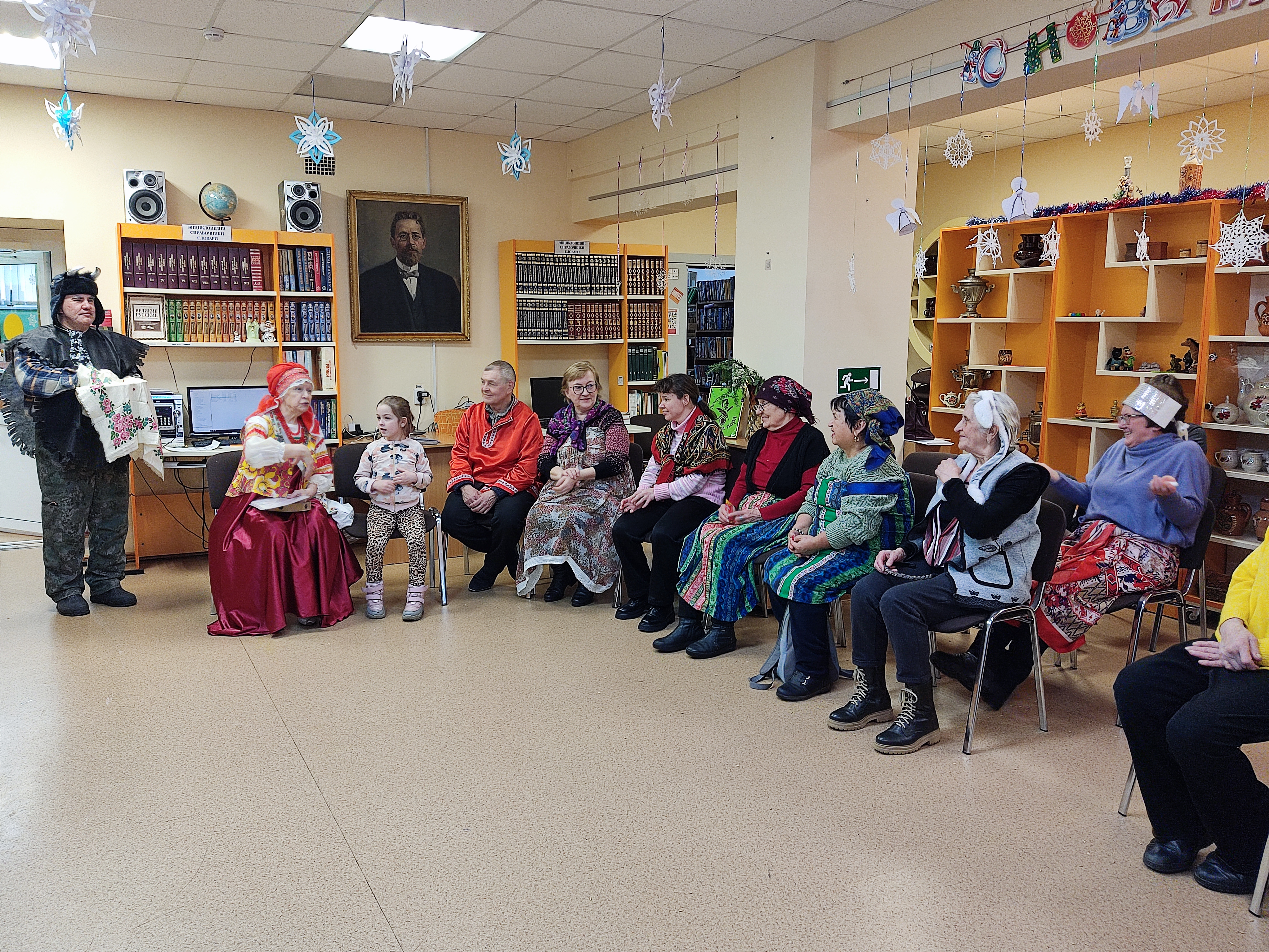 Во вторую неделю святочных дней библиотекари провели народное гуляние, на котором было по-настоящему тепло – не от батарей, а от людей, песен и добрых традиций. Библиотека на один вечер превратилась в уютную избу, где каждому нашлось место и дело по душе.