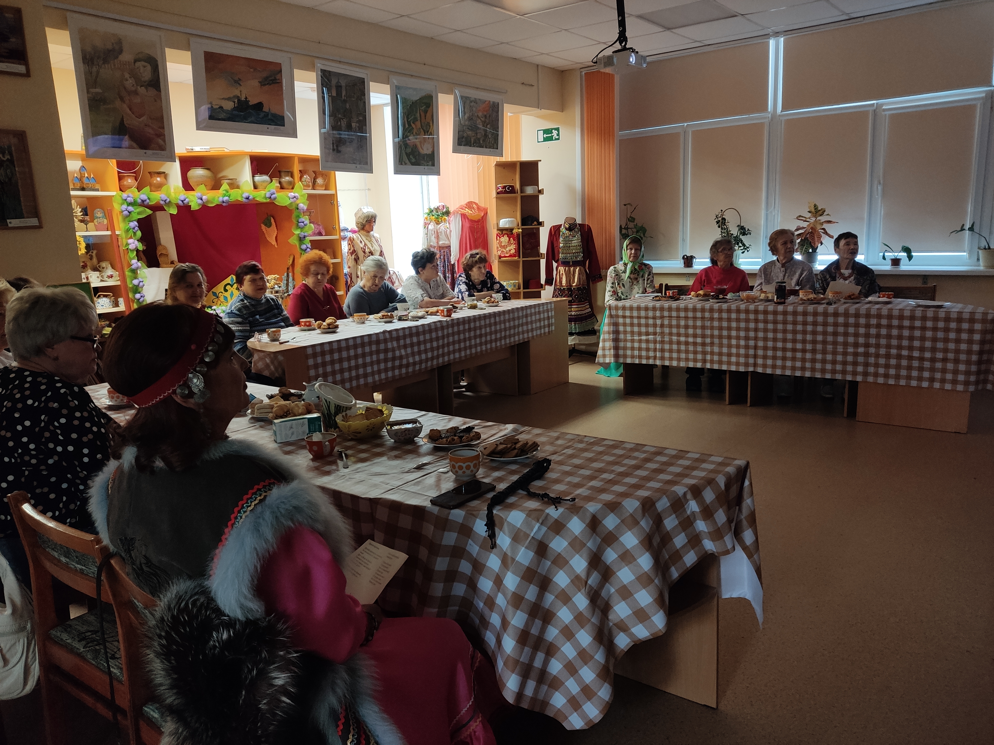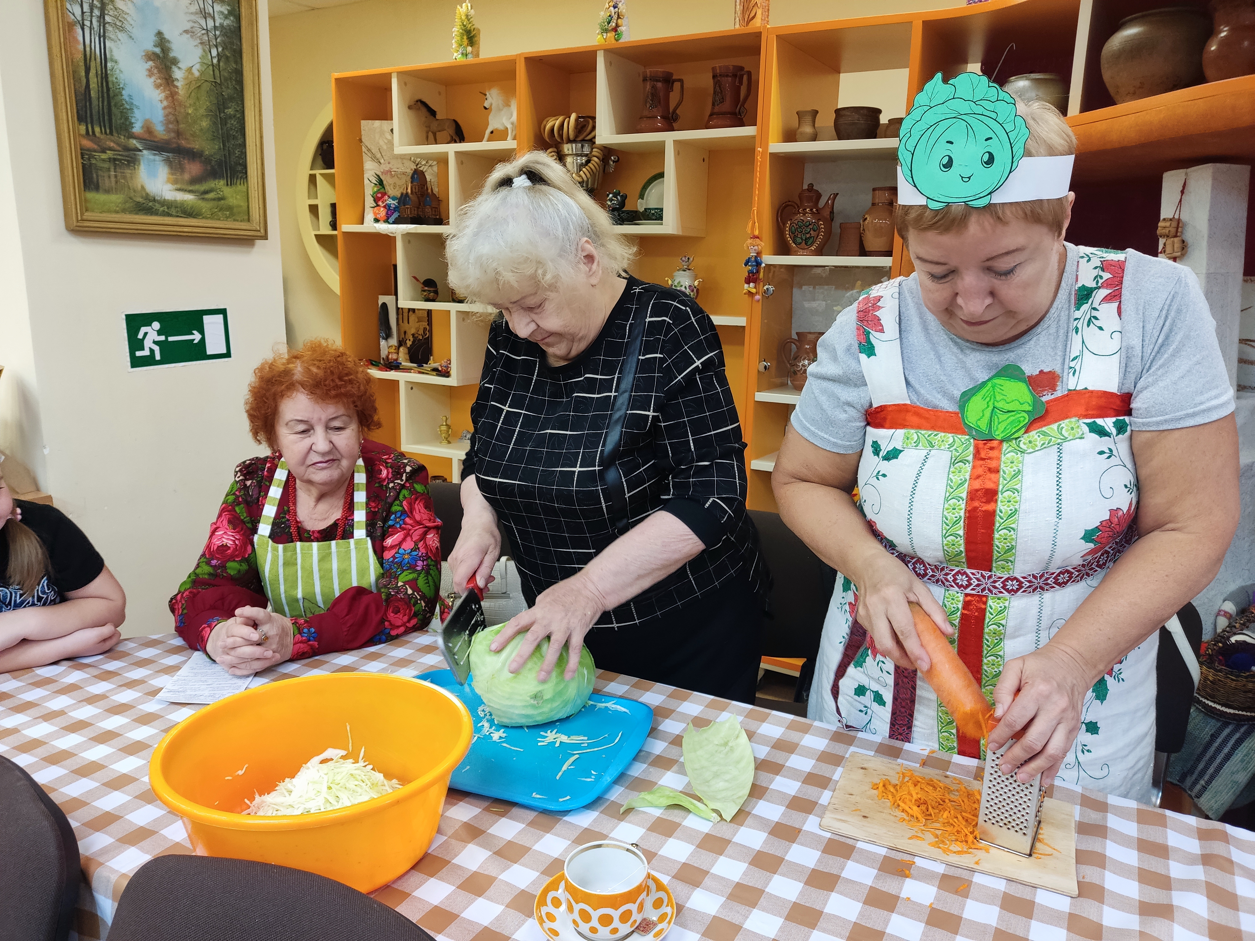 В библиотеке вновь ожила атмосфера деревенского веселья — шумная, задорная, душевная! На посиделках хозяйки ловко шинковали капусту, натирали морковь, укладывали хрустящую заготовку в "кадушки" — словно вернулись в те времена, когда каждая осень собирала всех за общим делом и песней.