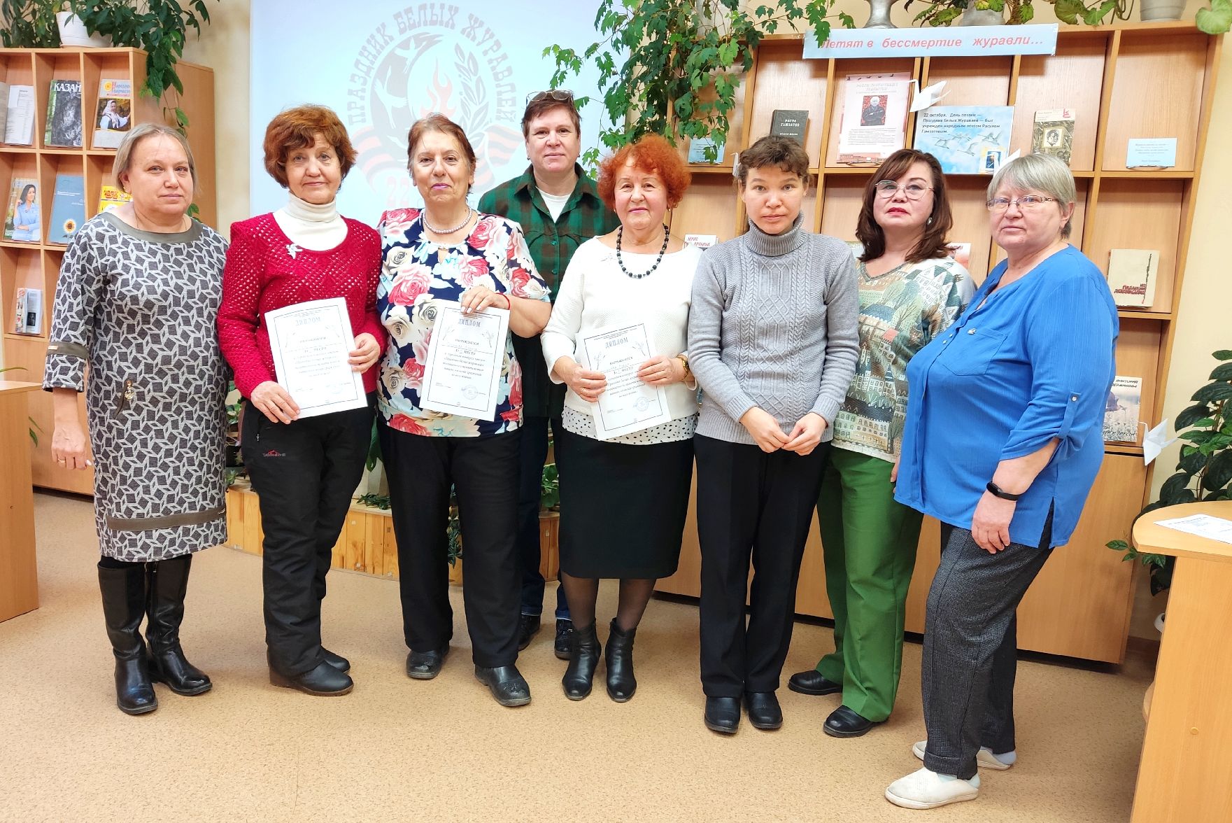 В городской библиотеке №2 в конце октября прошел конкурс чтецов, посвященный Празднику Белых Журавлей, который отмечается в России 22 октября. Юные и зрелые участники конкурса читали любимые стихи. Предлагалось две номинации: произведение любого автора и творчество Расула Гамзатова.
