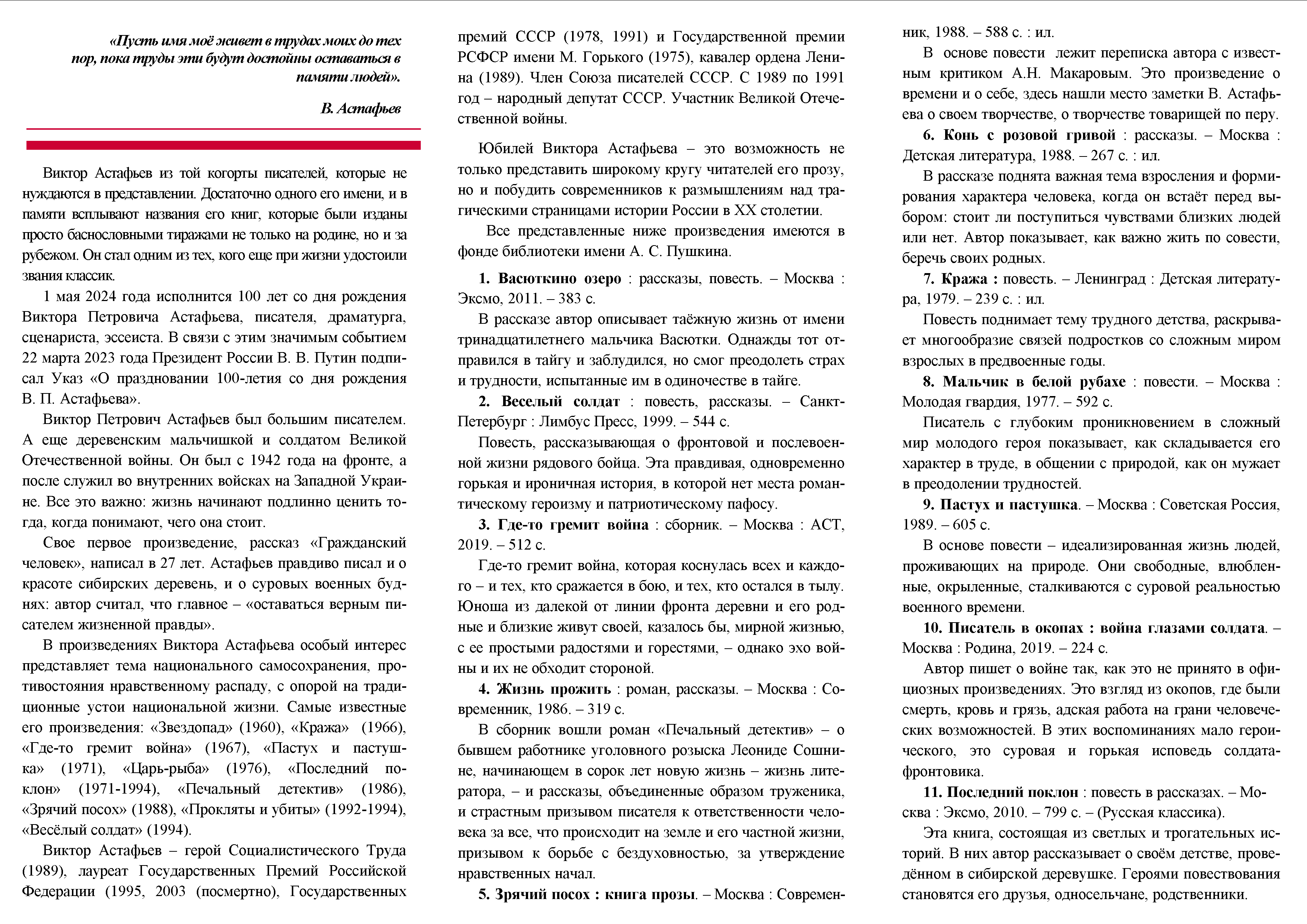 Библиографическая памятка к 100-летию В. П. Астафьева
