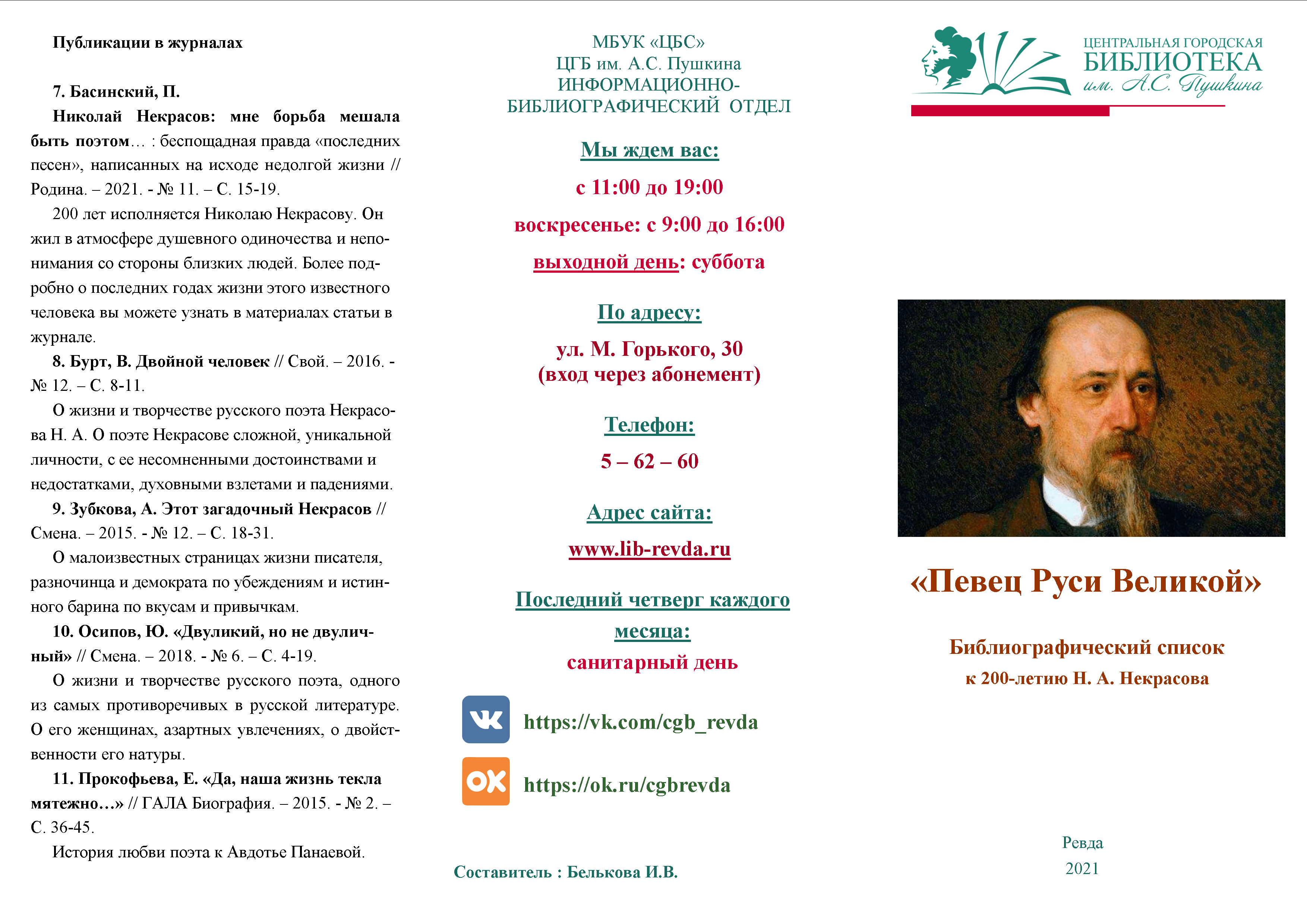 Библиографический список к 200-летию Н. А. Некрасова