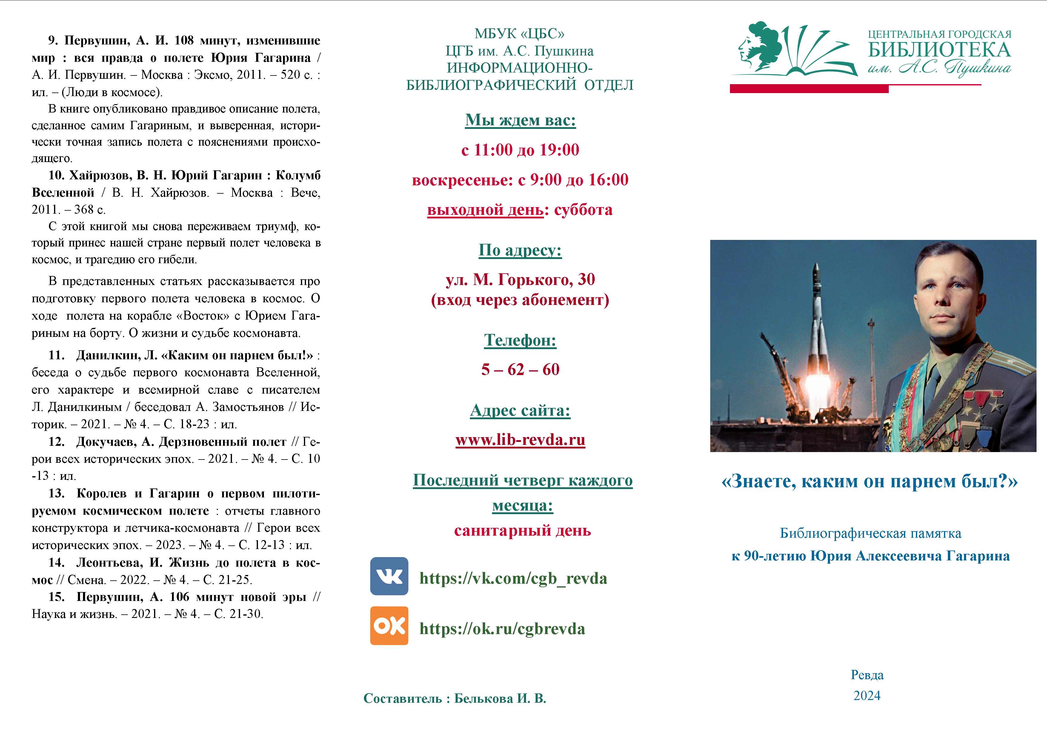 Библиографическая памятка к 90-летию Юрия Алексеевича Гагарина
