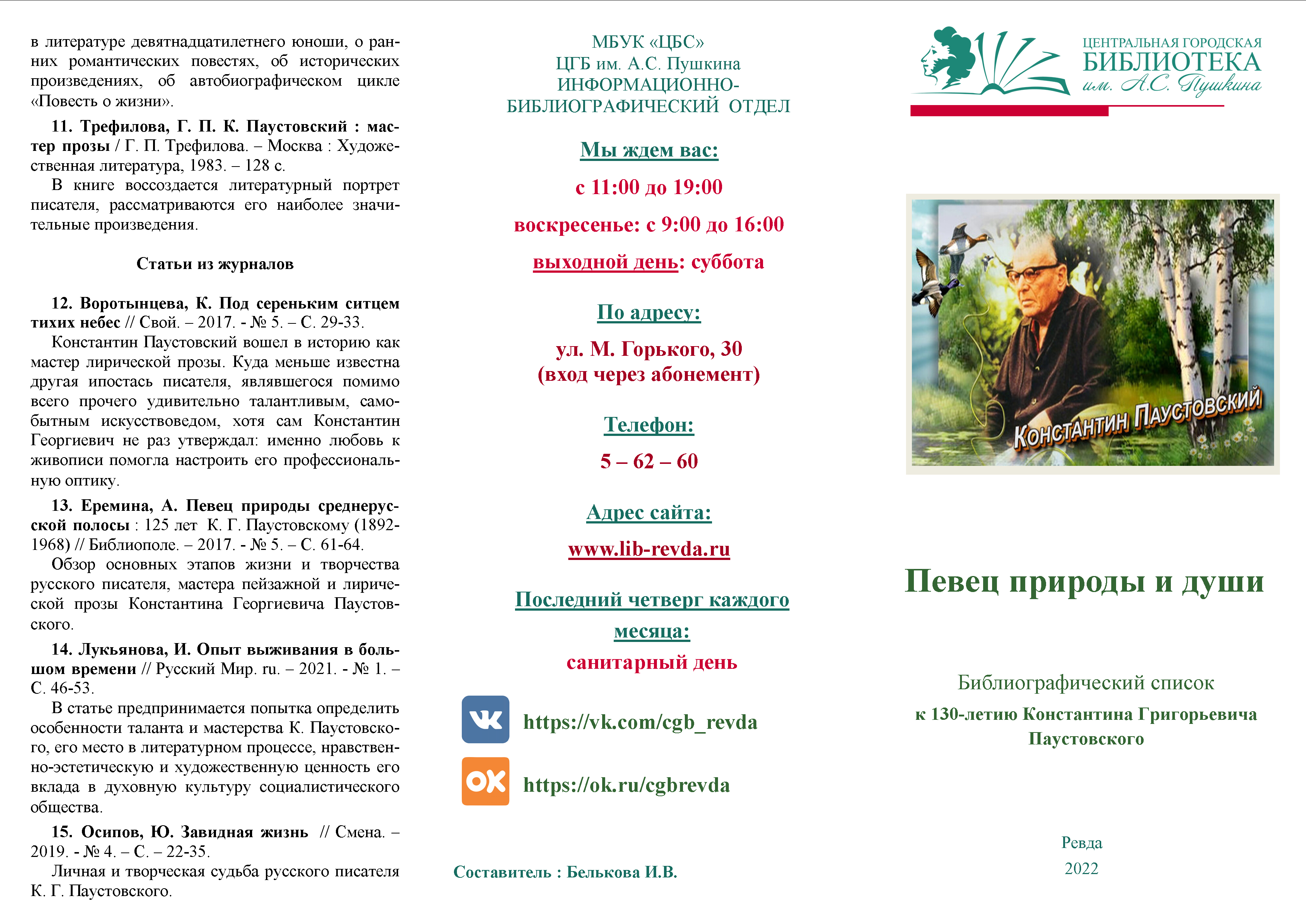 Библиографический список к 130-летию Константина Григорьевича Паустовского