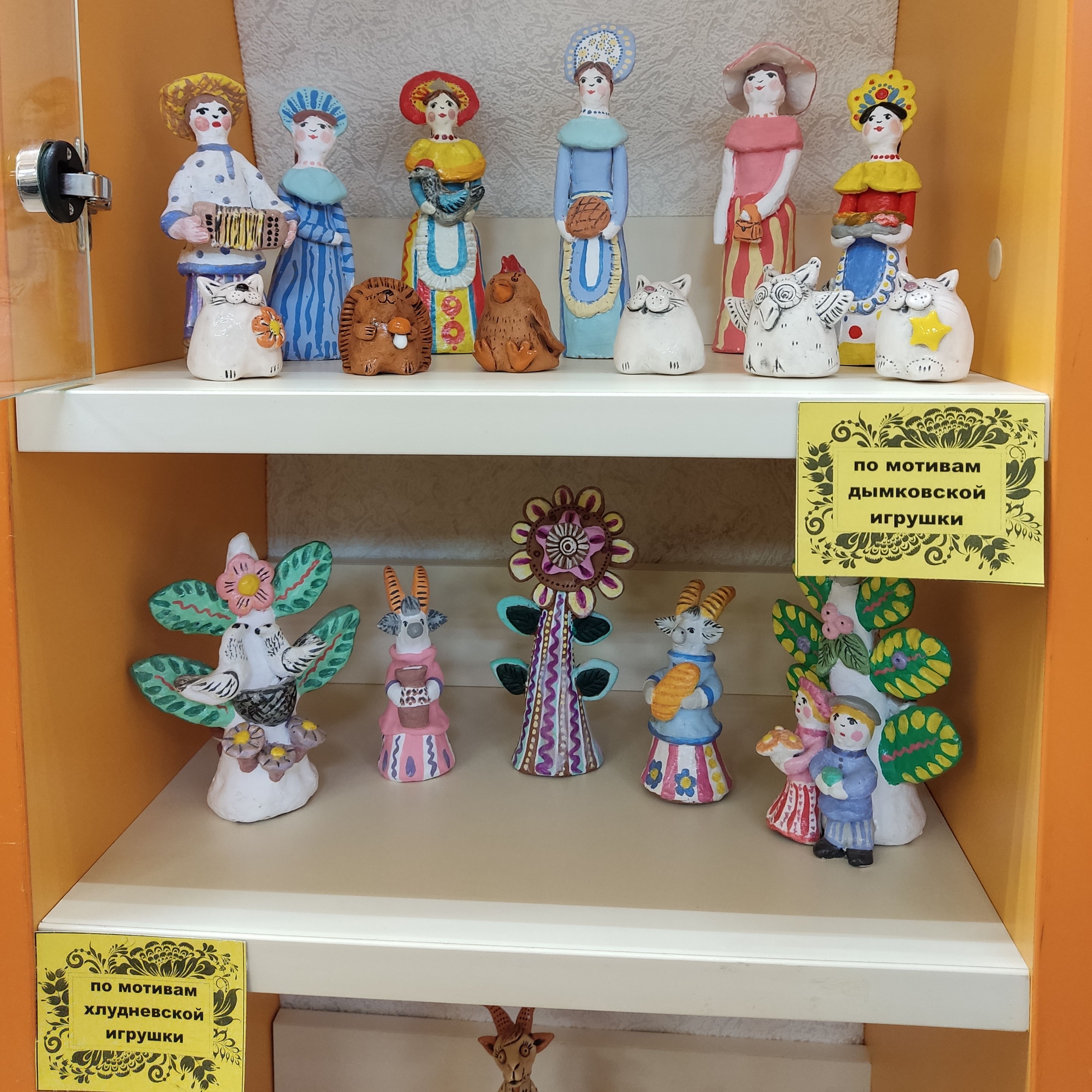 На выставке представлены удивительные работы, вдохновлённые традициями народного декоративно-прикладного искусства: дымковской, дивеевской, хлудневской, филимоновской и каргопольской игрушки, а также мотивами уральской росписи. Каждое изделие — это не просто творческая работа, а отражение культурного наследия и любви к народным традициям.