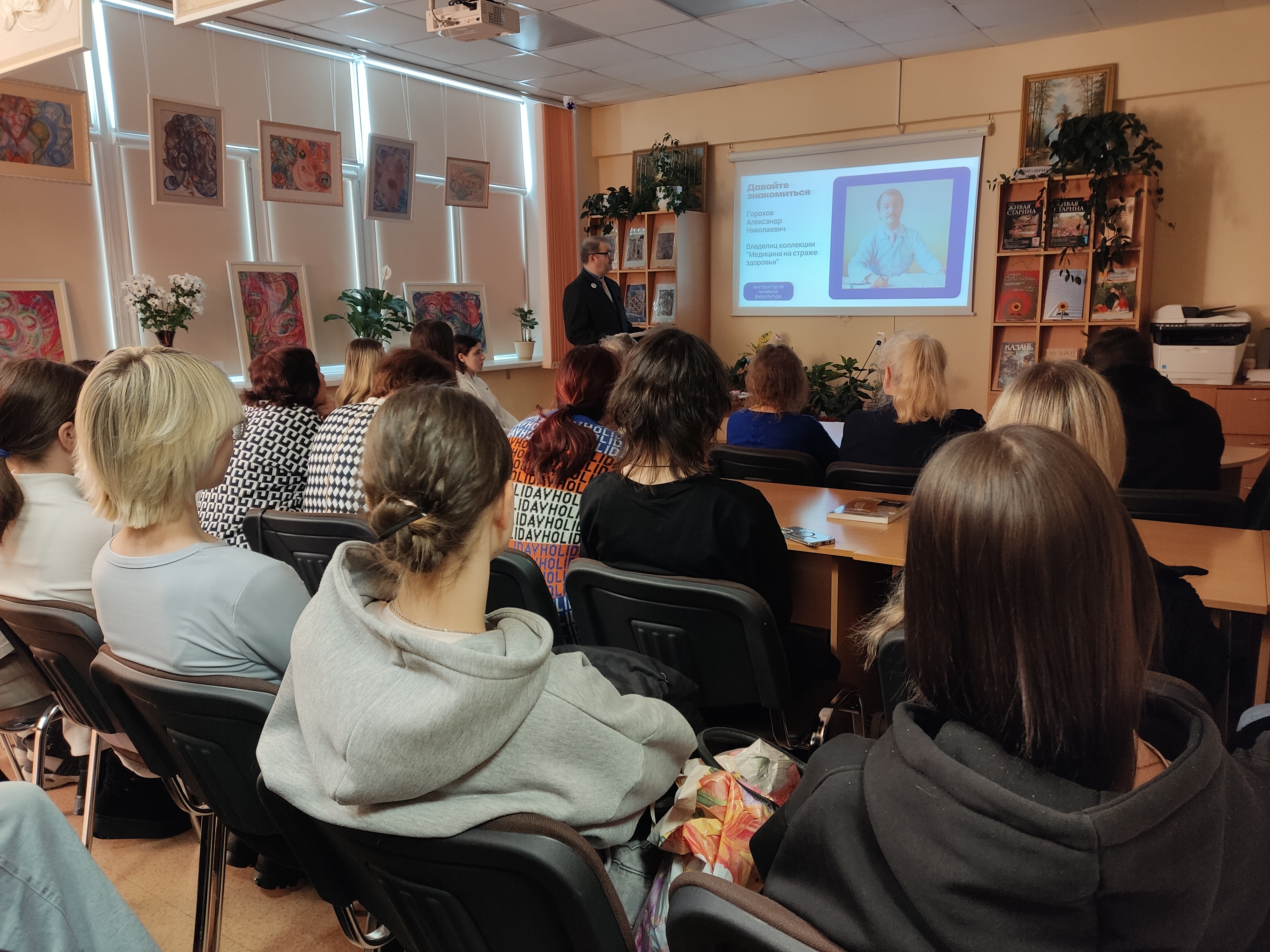 На мероприятие пришли студенты первого курса Медицинского колледжа, а также читатели библиотеки. Александр Николаевич провёл увлекательную беседу о здоровье и медицине, рассказав о важном и серьёзном… через необычную призму — свою уникальную коллекцию.