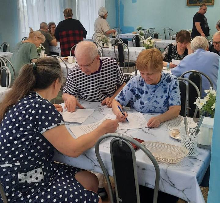 В профилактории «Родничок» участники погрузились в атмосферу музыкальной игры «Угадай мелодию по кинофильмам». Звучали культовые песни из советских фильмов — «Песня про зайцев», «Пять минут», «Ваше благородие, госпожа удача», «Прекрасное далеко», «Крылатые качели» и другие. Самым трогательным моментом стало то, что гости сами подхватили эстафету: пели, делились стихами и поздравлениями, создавая атмосферу большого дружеского вечера.