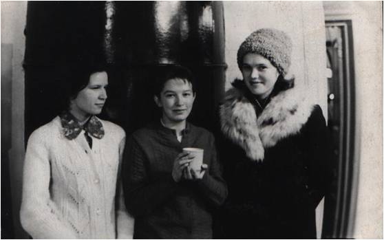 На фото: В.М.Рожкова, А.П.Мокерова, Л.В. Цепилова; старое здание библиотеки