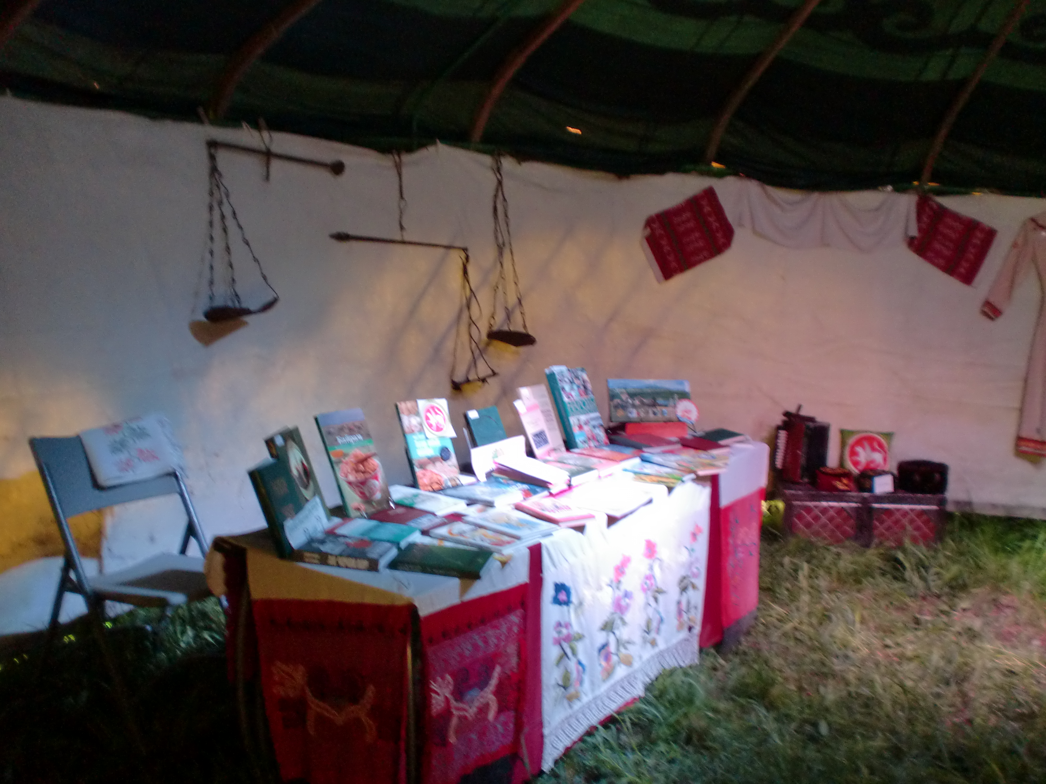 В этом году на праздник привезли башкирскую юрту, и возникла идея обустроить интерьер юрты музейными экспонатами, которые находятся в музее Центра национальных культур. Это и предметы быта, кухни, промысла и национальных костюмов. Также были представлены книги на татарском и башкирском языках, что вызвало интерес у гостей праздника. Им было очень приятно узнать, что можно взять в библиотеки литературу на родном языке.