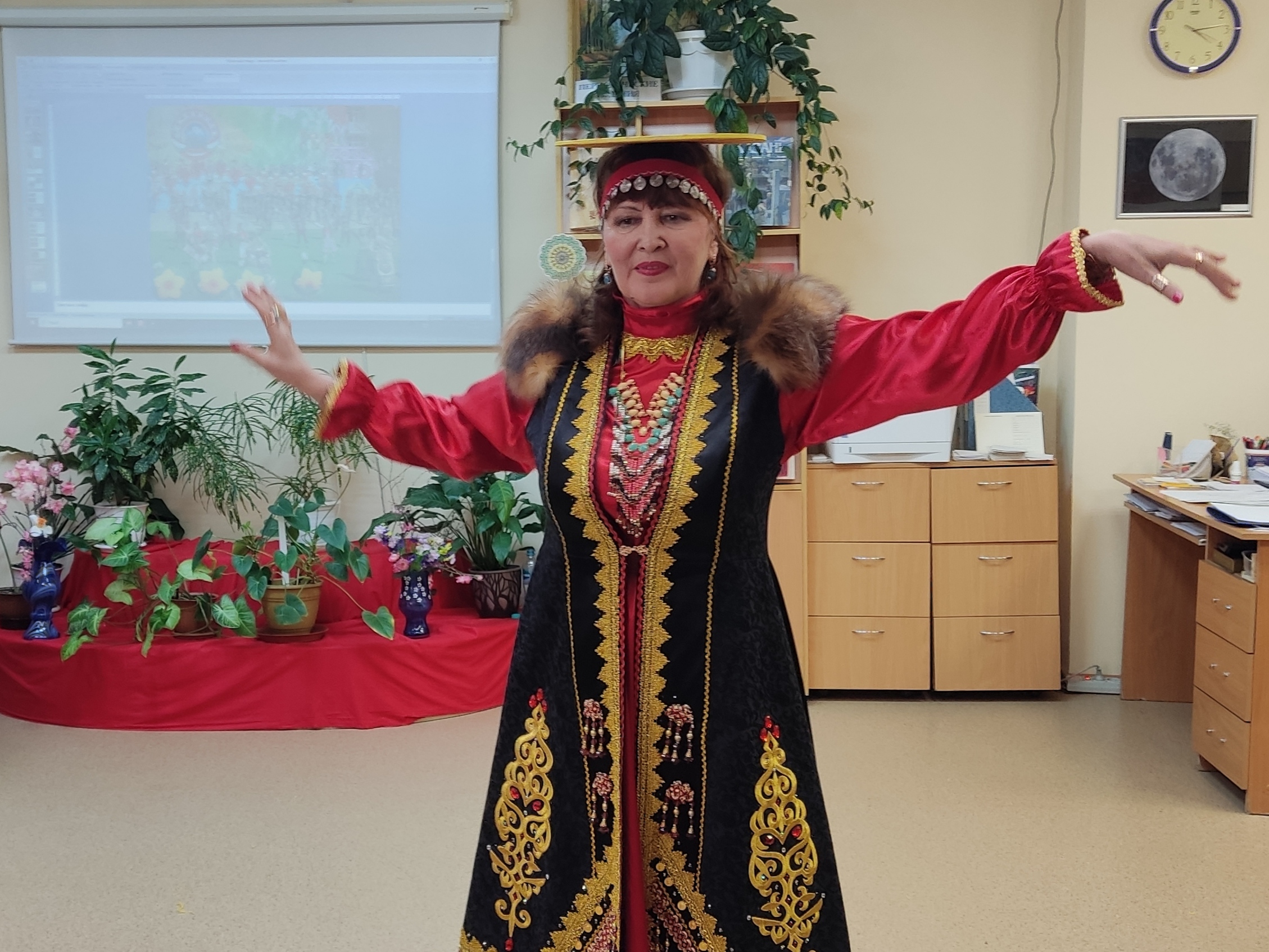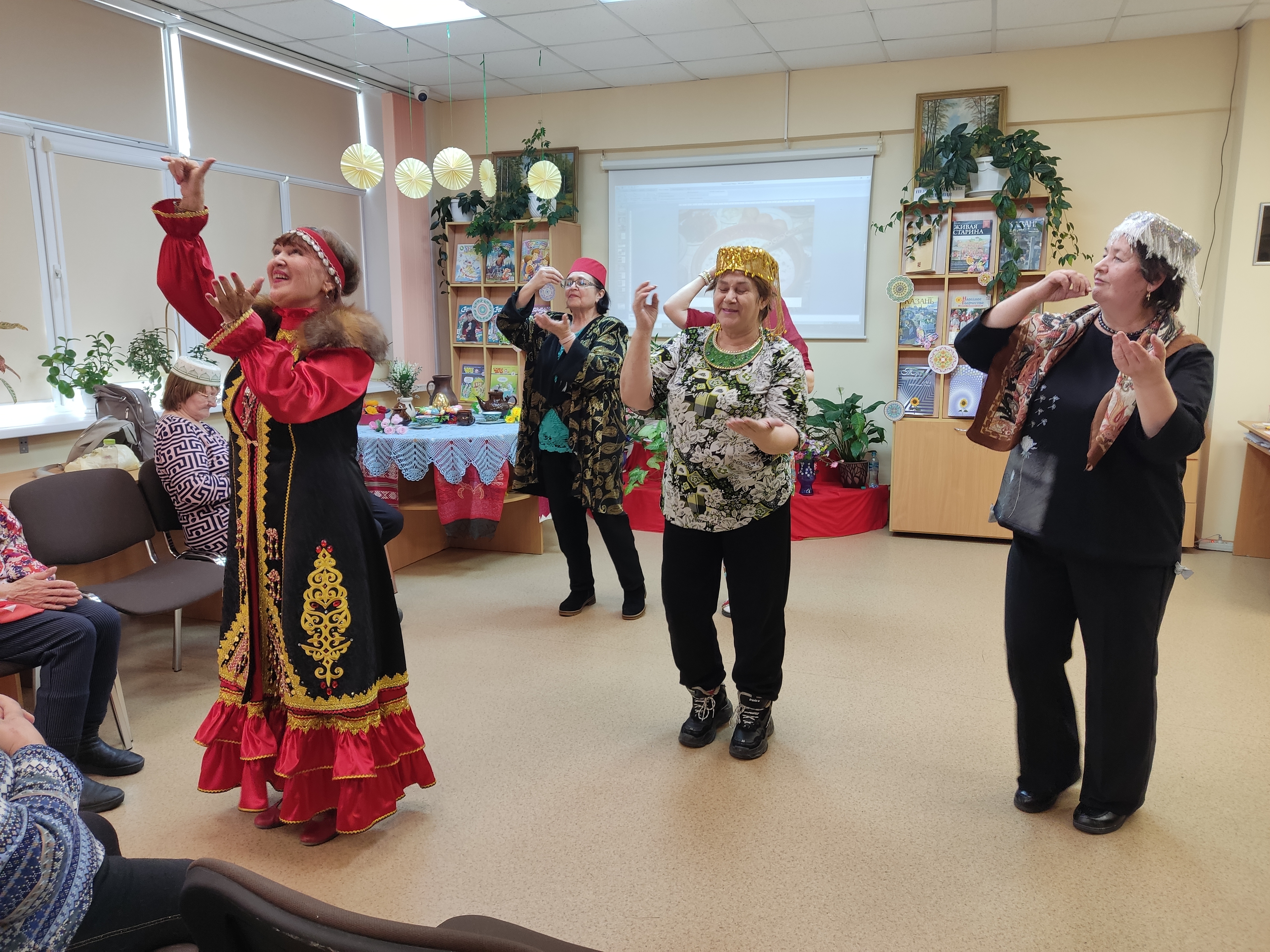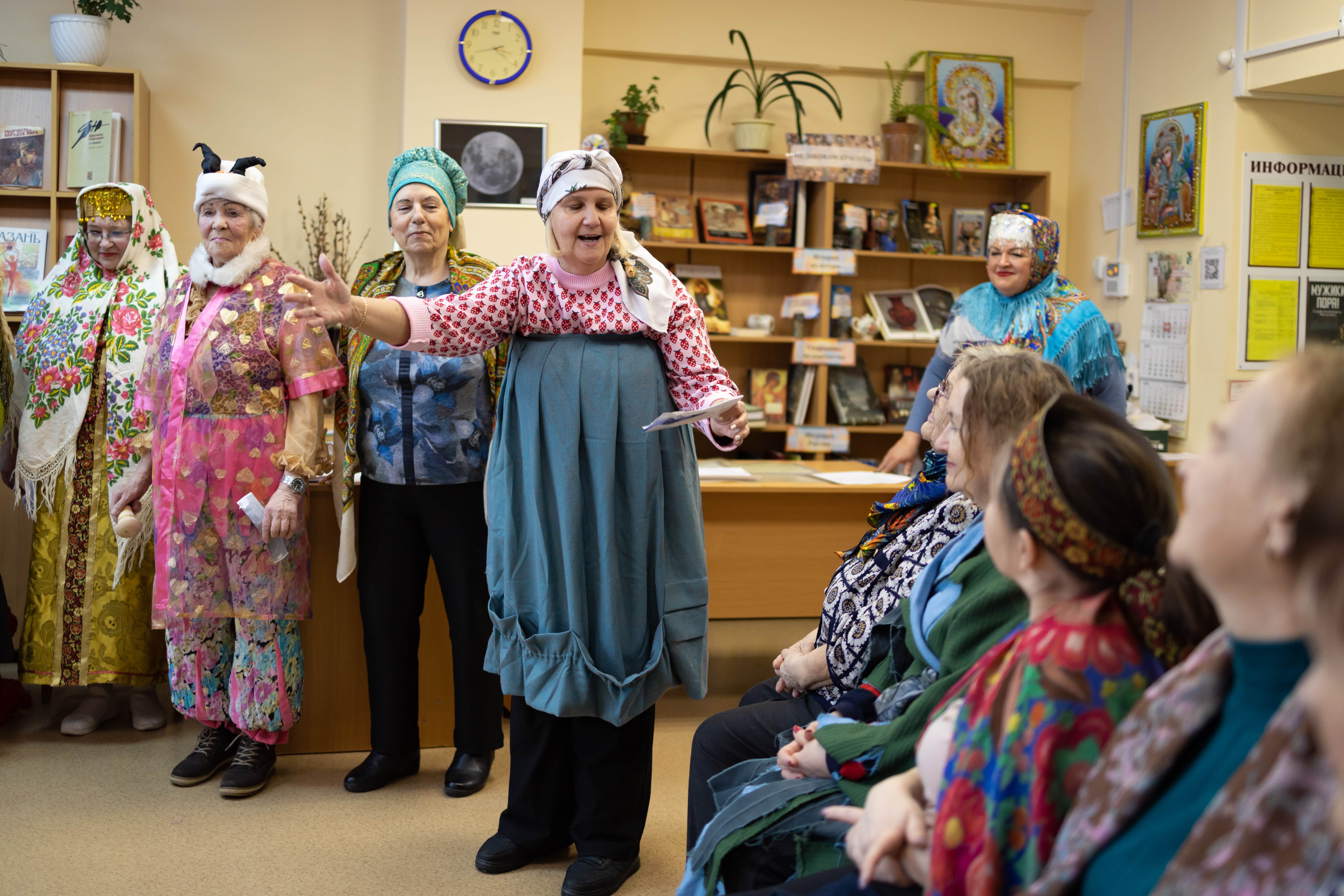 Пели задушевные песни и озорные колядки, пересыпали все искрометными прибаутками. С удовольствием переодевались, на лету придумывали себе наряды. Некоторые облачились в башкирские, узбекские, татарские костюмы или использовали элементы восточных одеяний. Почему бы и нет? Ведь на базе библиотеки Центр национальных культур.