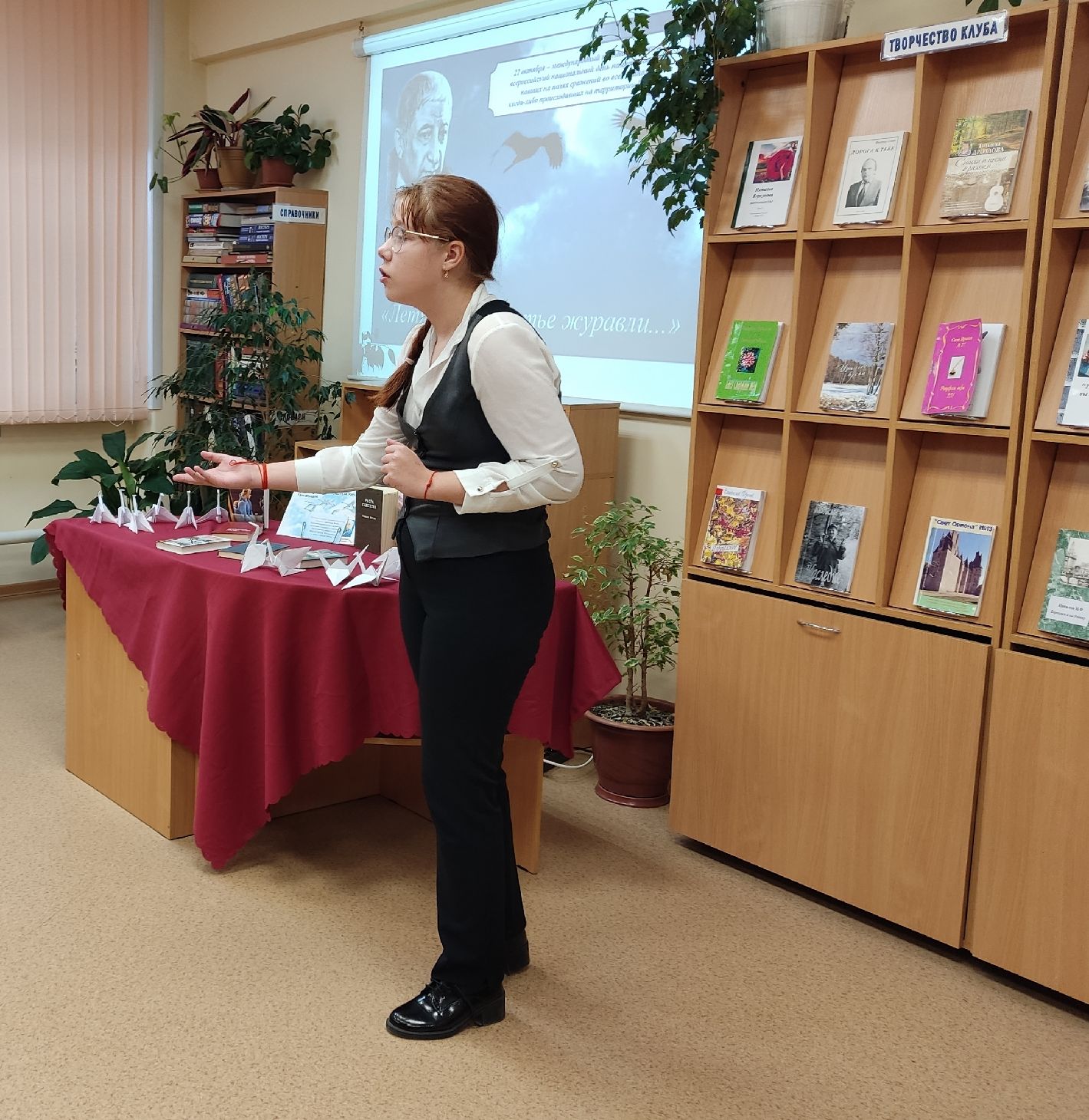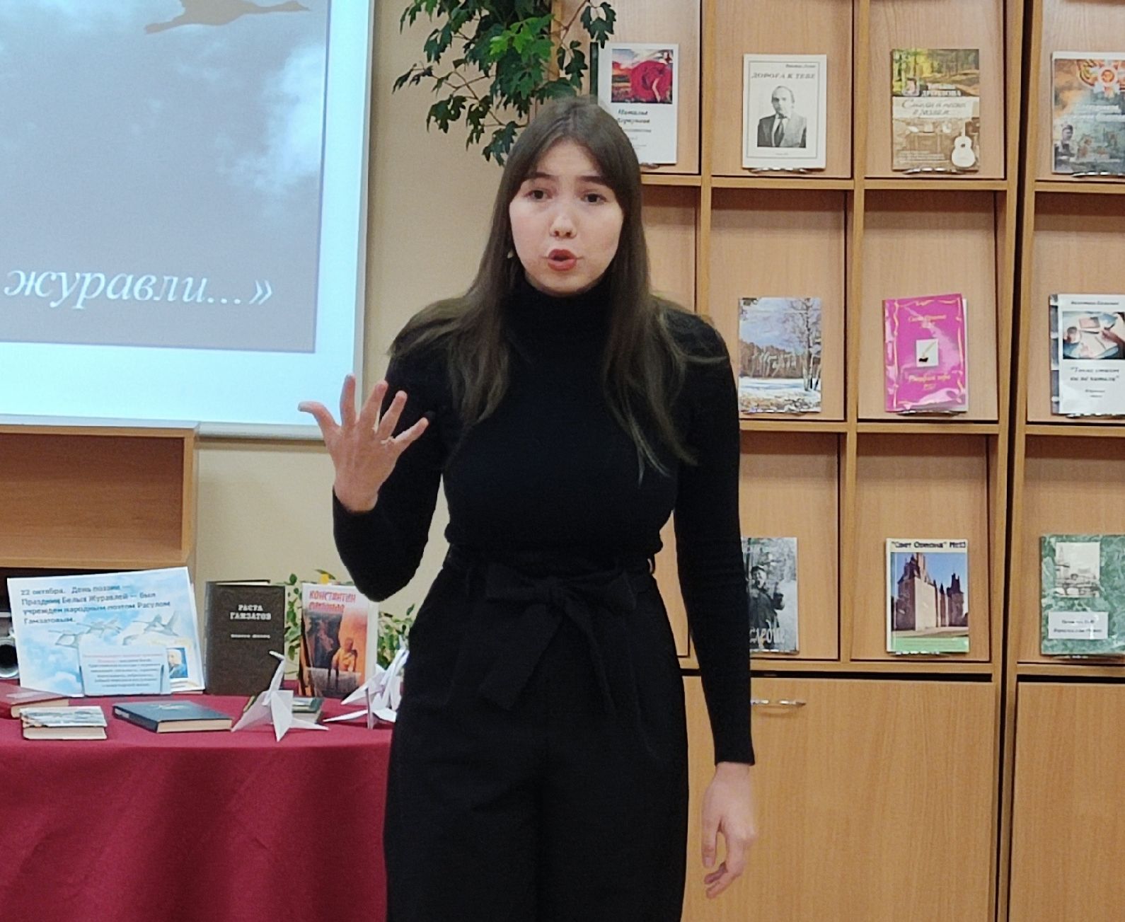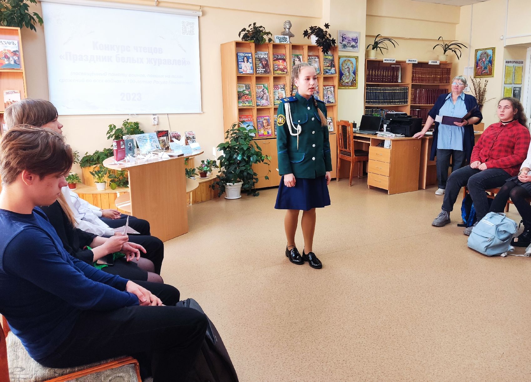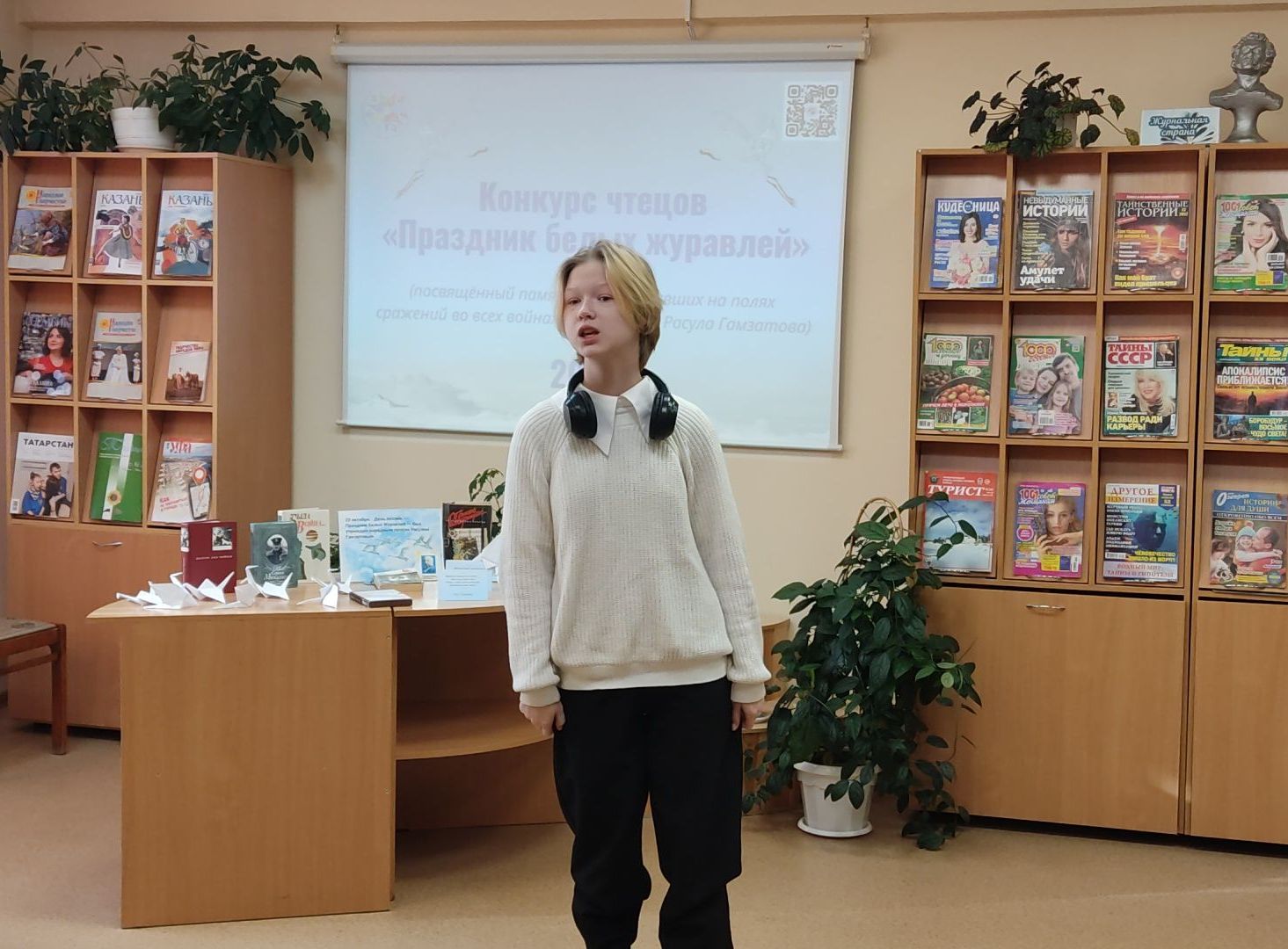 В городской библиотеке №2 в конце октября прошел конкурс чтецов, посвященный Празднику Белых Журавлей, который отмечается в России 22 октября. Юные и зрелые участники конкурса читали любимые стихи. Предлагалось две номинации: произведение любого автора и творчество Расула Гамзатова.