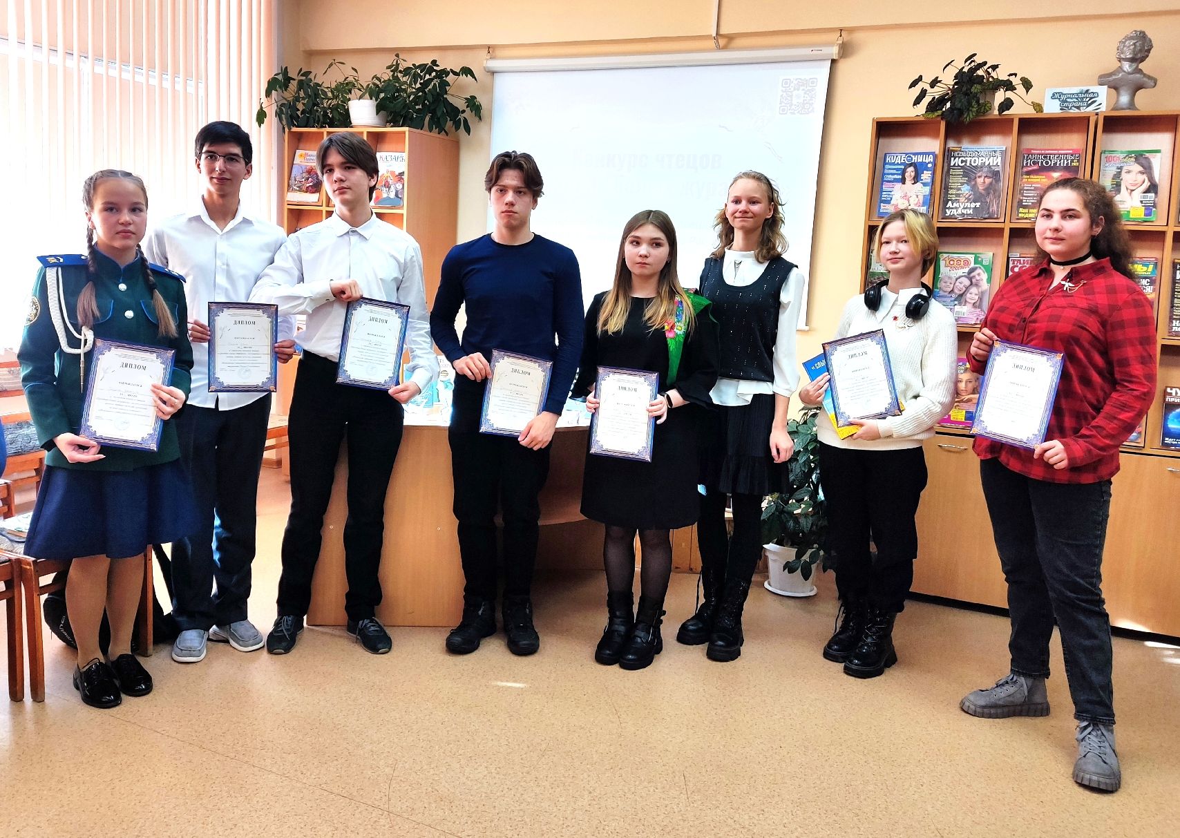 Победителем среди юных участников стала Диана Норкина из ЦДО со стихотворением Михаила Исаковского «Враги сожгли родную хату», на втором месте – Валерия Бобина, школа №1 («Зинка» Ю.Друнина).