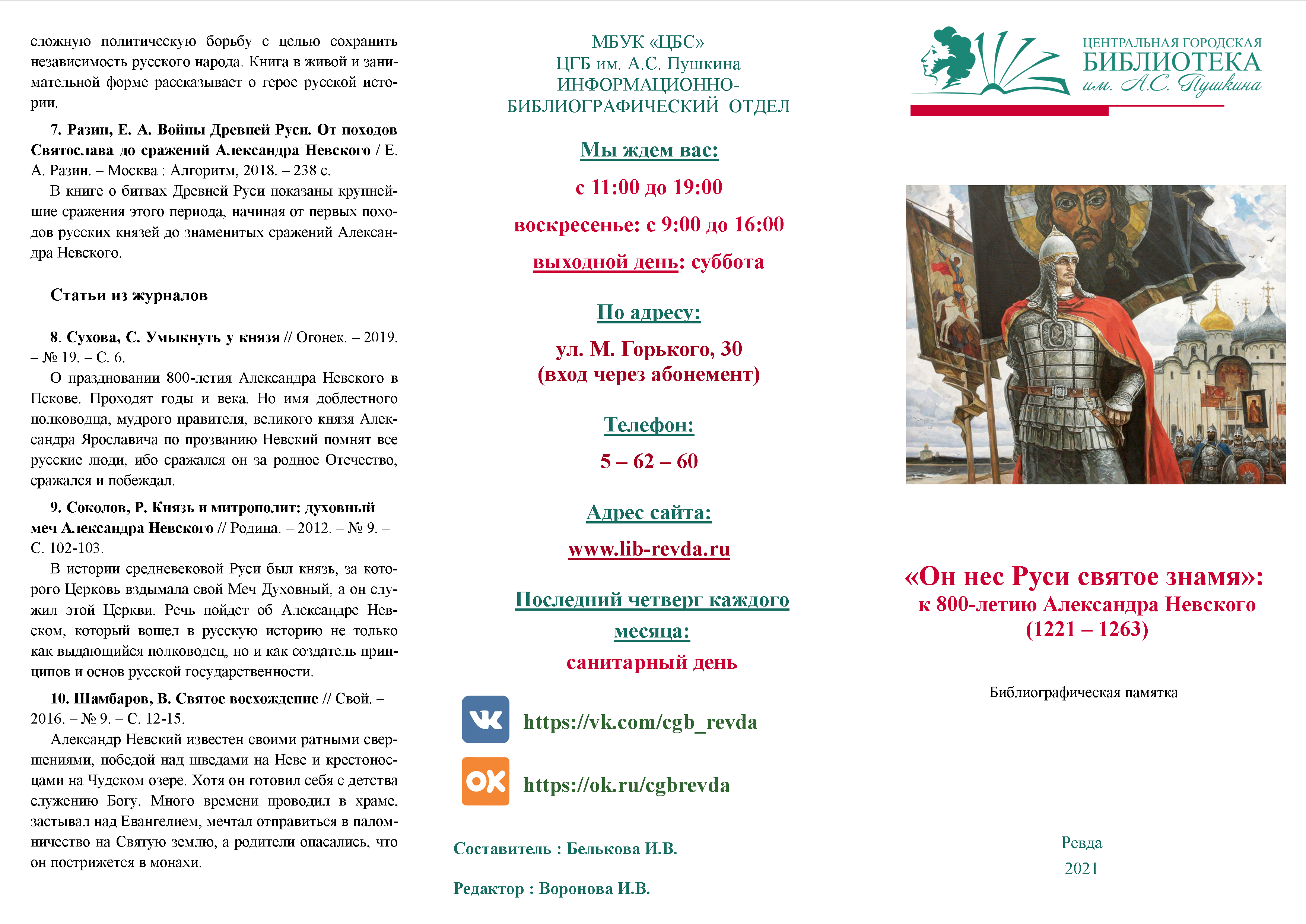 «Он нес Руси святое знамя»:к 800-летию Александра Невского (1221 – 1263)