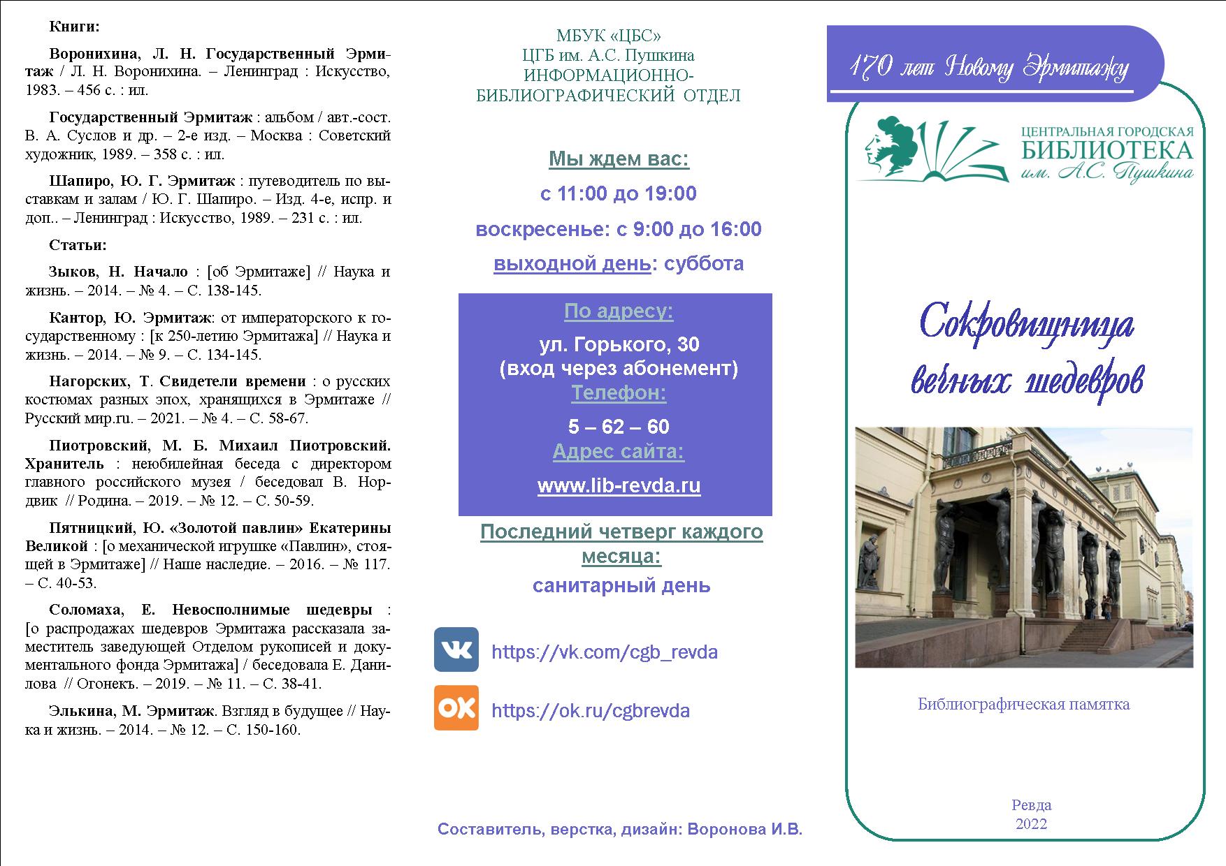 Библиографическая памятка "Сокровищница вечных шедевров"