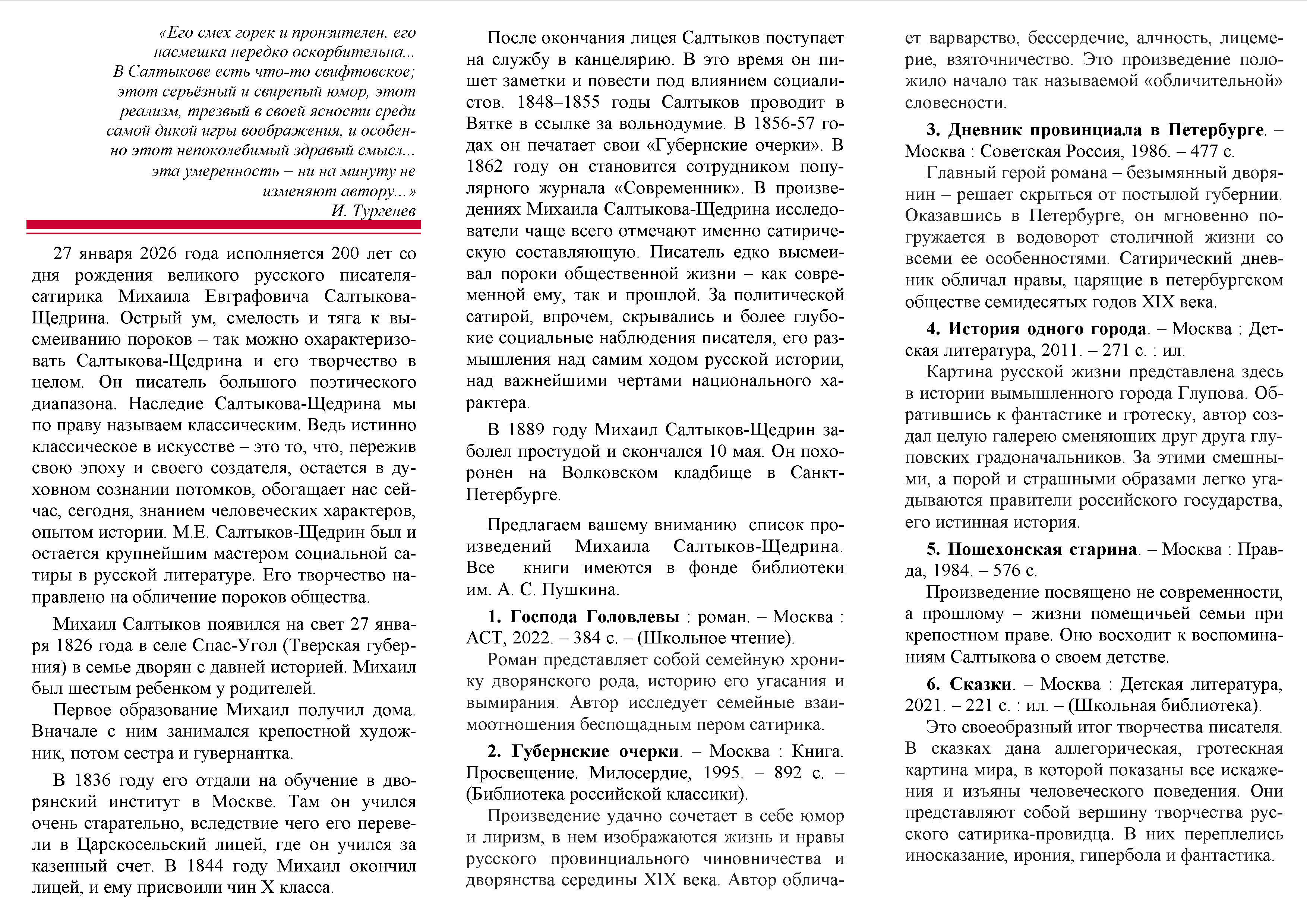 Сатиры смелой властелин к 200-летию Михаила Евграфовича Салтыкова-Щедрина