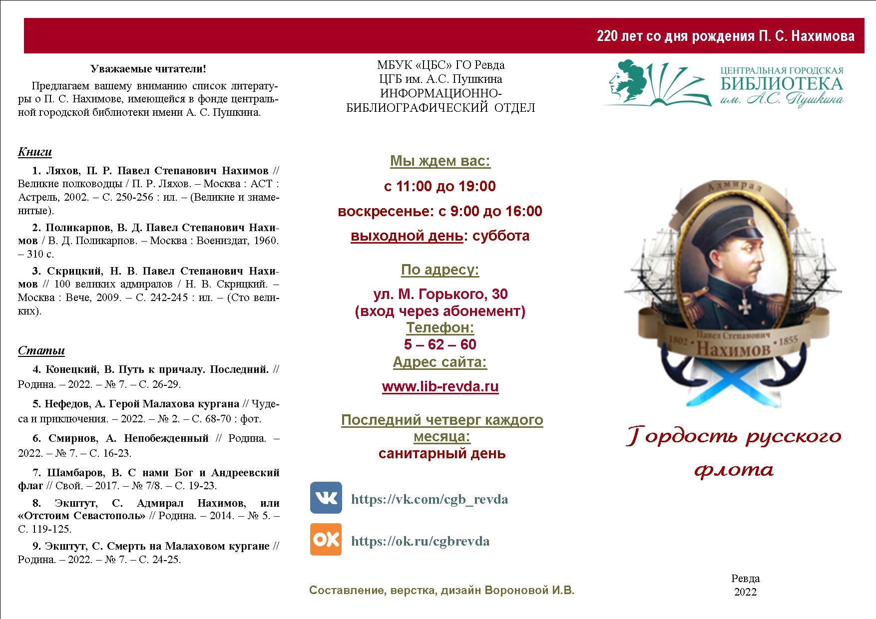Библиографический список к 225-летию