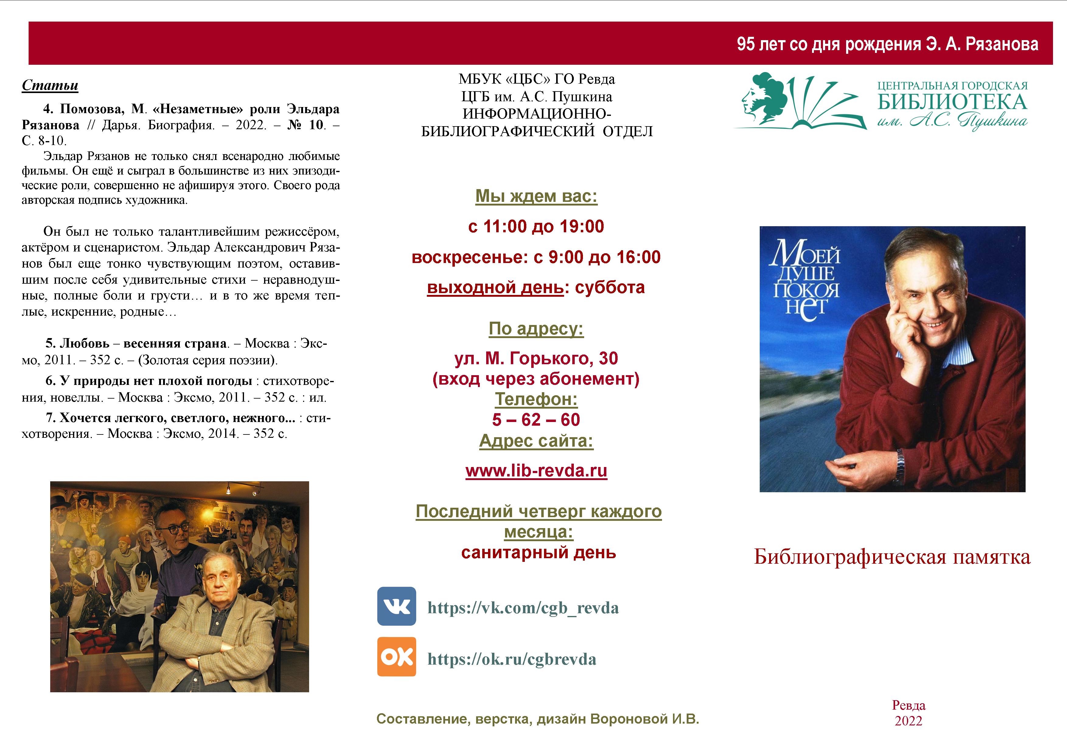 95 лет со дня рождения Э. А. Рязанова