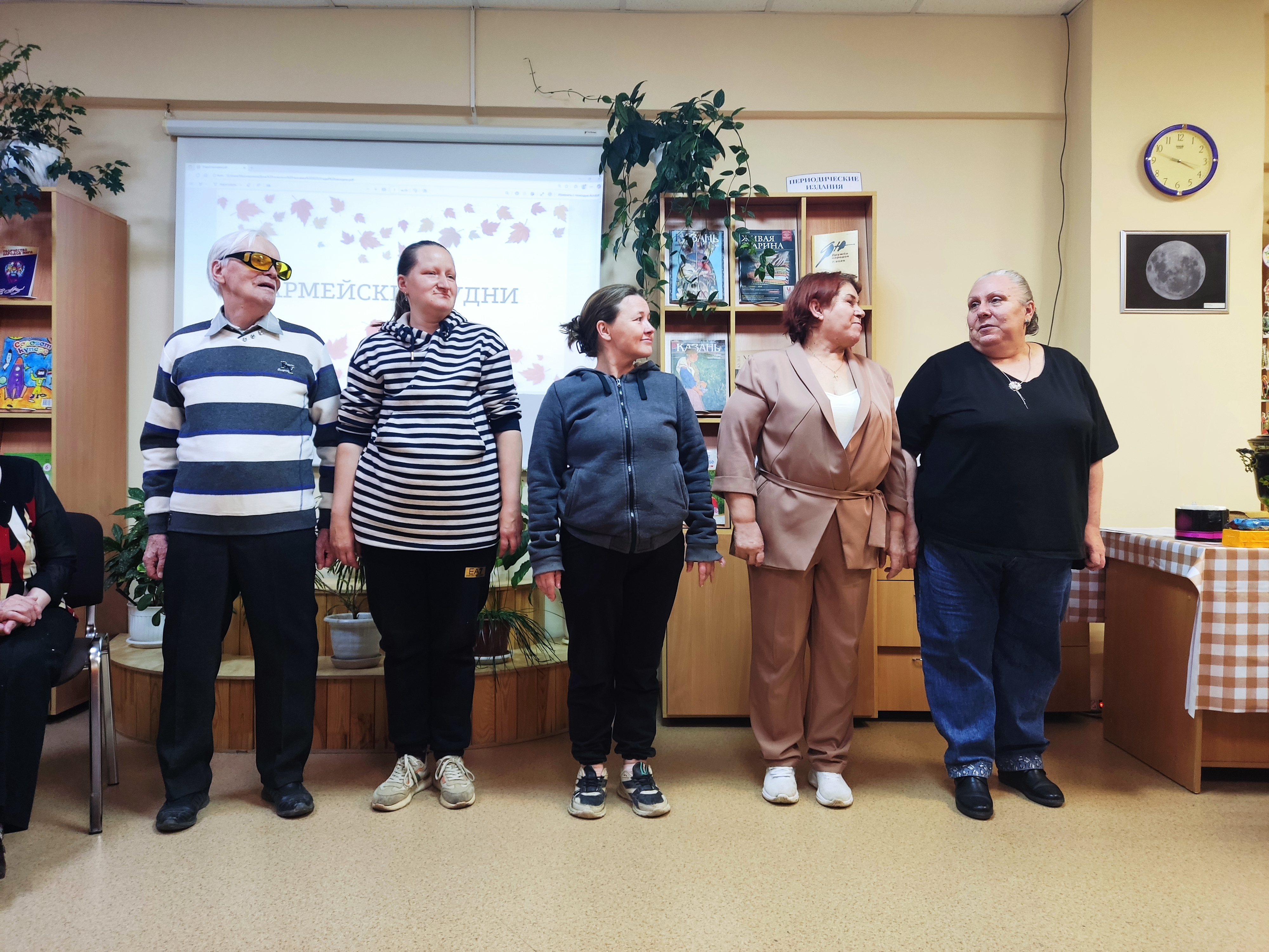 В профилактории «Родничок» участники погрузились в атмосферу музыкальной игры «Угадай мелодию по кинофильмам». Звучали культовые песни из советских фильмов — «Песня про зайцев», «Пять минут», «Ваше благородие, госпожа удача», «Прекрасное далеко», «Крылатые качели» и другие. Самым трогательным моментом стало то, что гости сами подхватили эстафету: пели, делились стихами и поздравлениями, создавая атмосферу большого дружеского вечера.