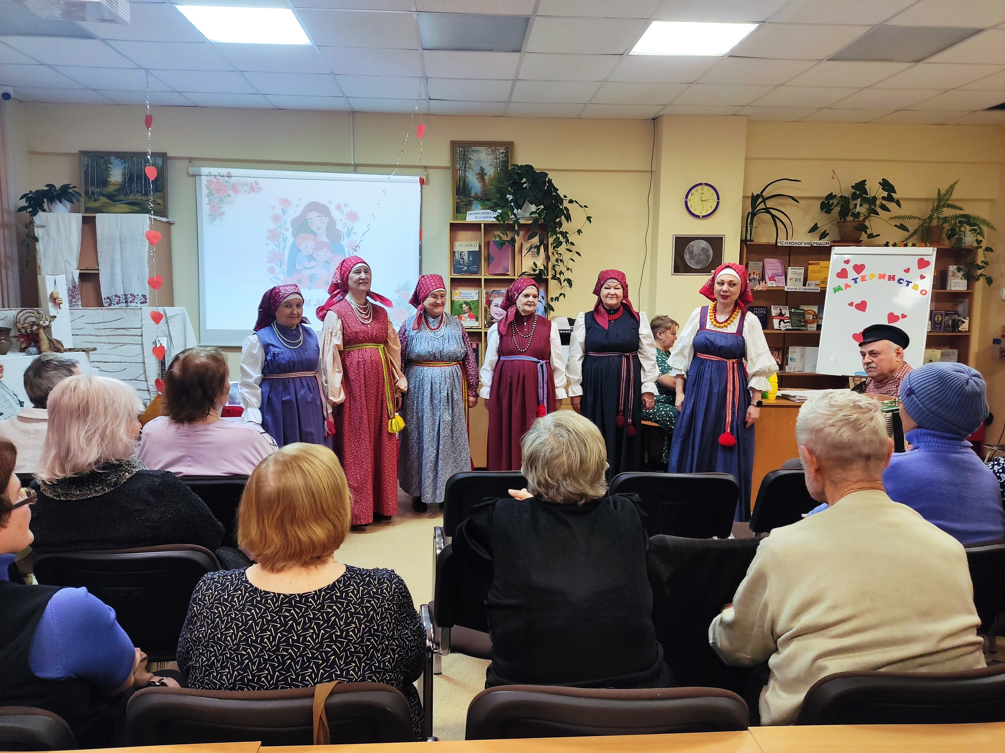 В библиотеке прошёл литературно-музыкальный вечер, посвящённый Дню матери. Открыл вечер ансамбль «Кужель» фолк-студия «Марьина завалинка». Казачьи романсы и народные песни сразу создали атмосферу тепла и семейного уюта — многие гости подпевали знакомые мелодии.