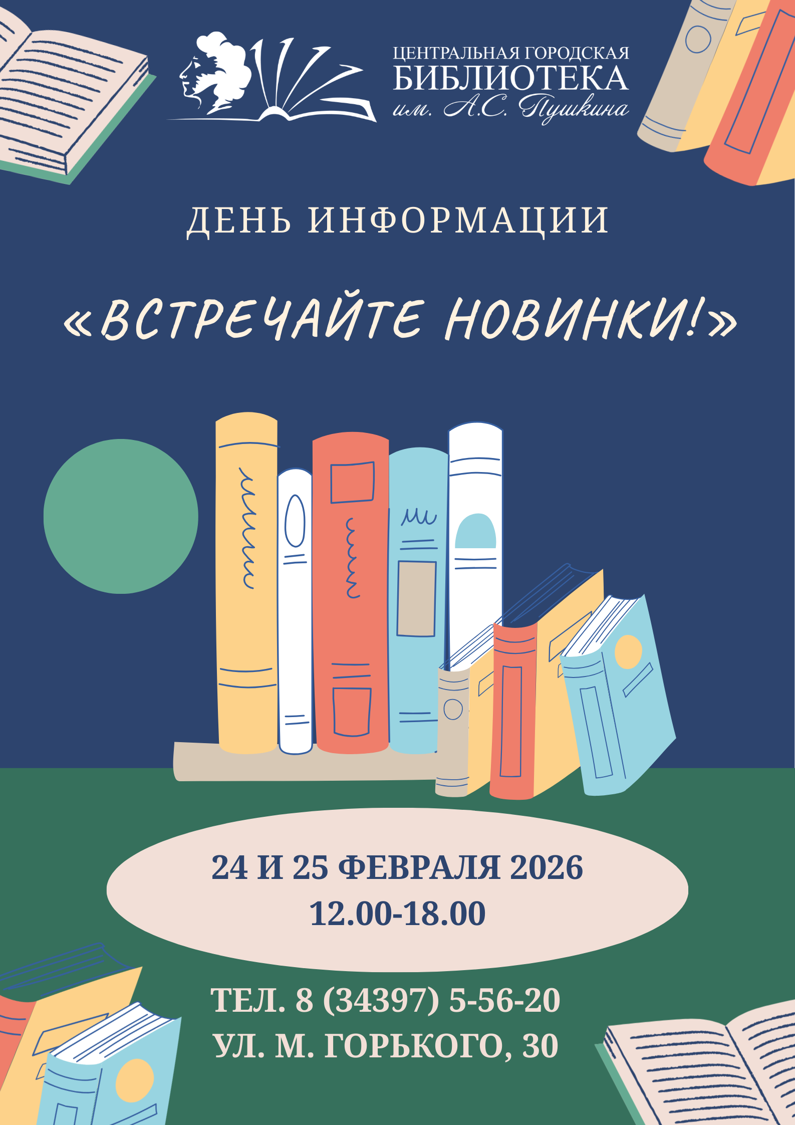 24 и 25 февраля Центральная городская библиотека им. А.С. Пушкина представляет вам новинки, поступившие в книжный фонд абонемента.